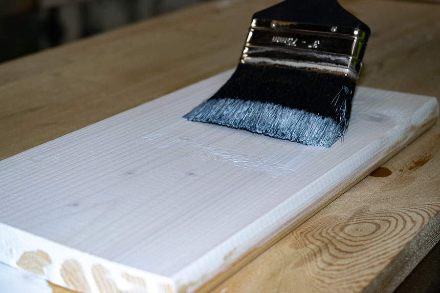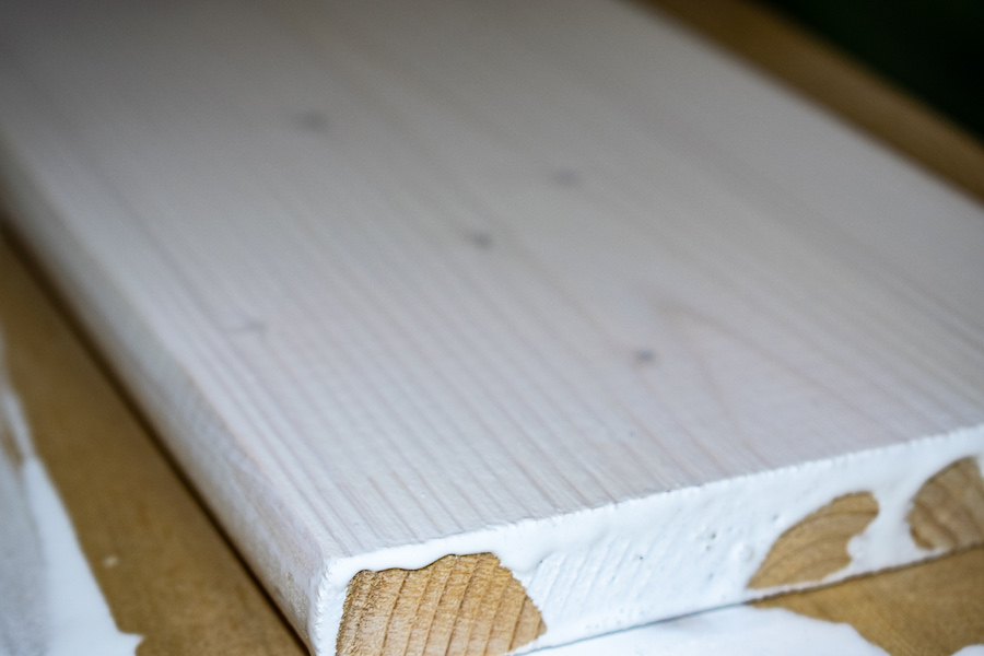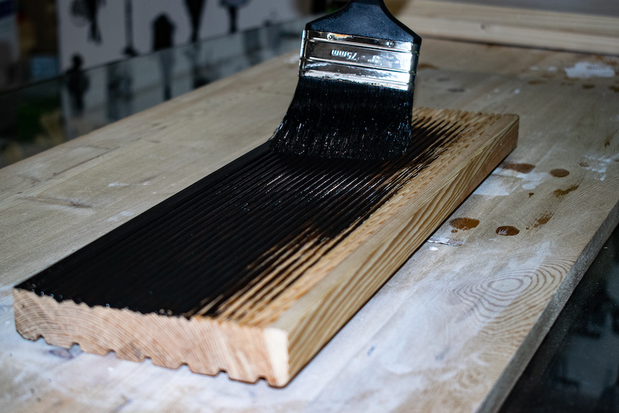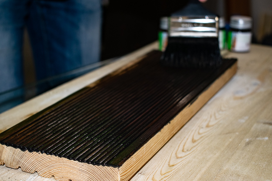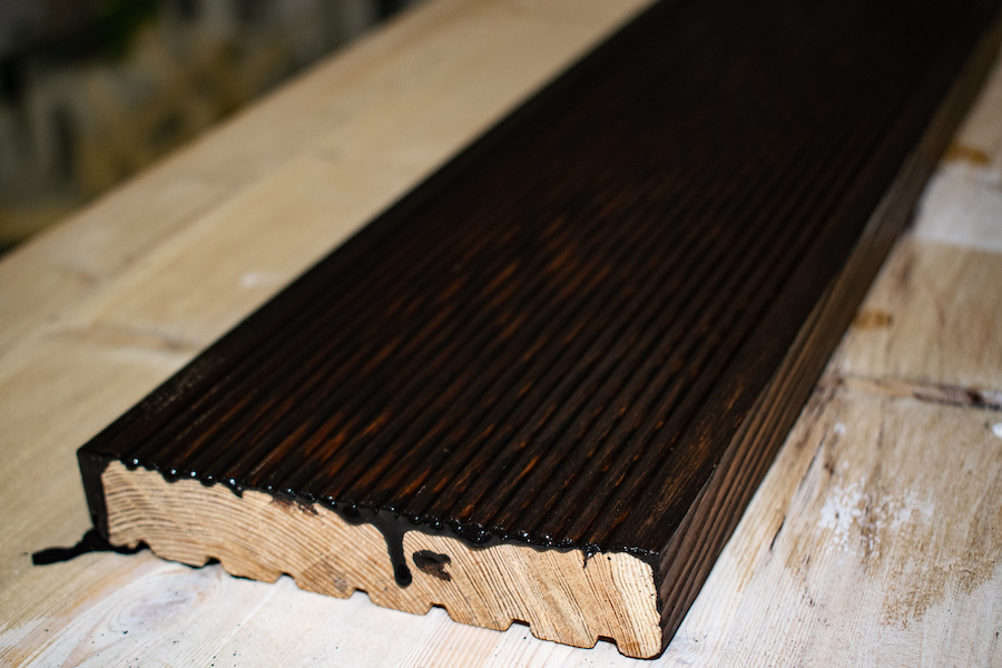 Фото 2. Окрашивание соснового планкена белым маслом