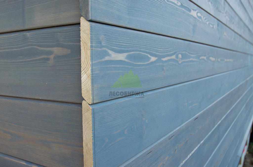 Лицевая сторона может быть покрыта либо прозрачными, либо цветными ЛКМ. Нередко отдается предпочтение бесцветным составам, которые не прячут уникальную текстуру лиственницы. Но при необходимости придать отделке определенный оттенок можно использовать и укрывную краску.
