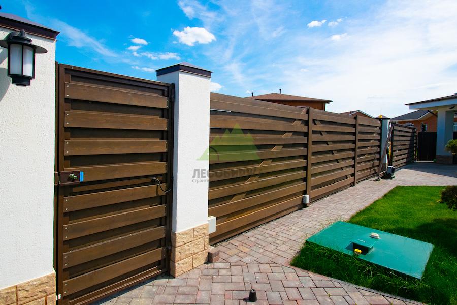 Такие заграждения легко совмещаются с другими материалами, к примеру профлист, металлические изделия, рейки из дерева и прочее.