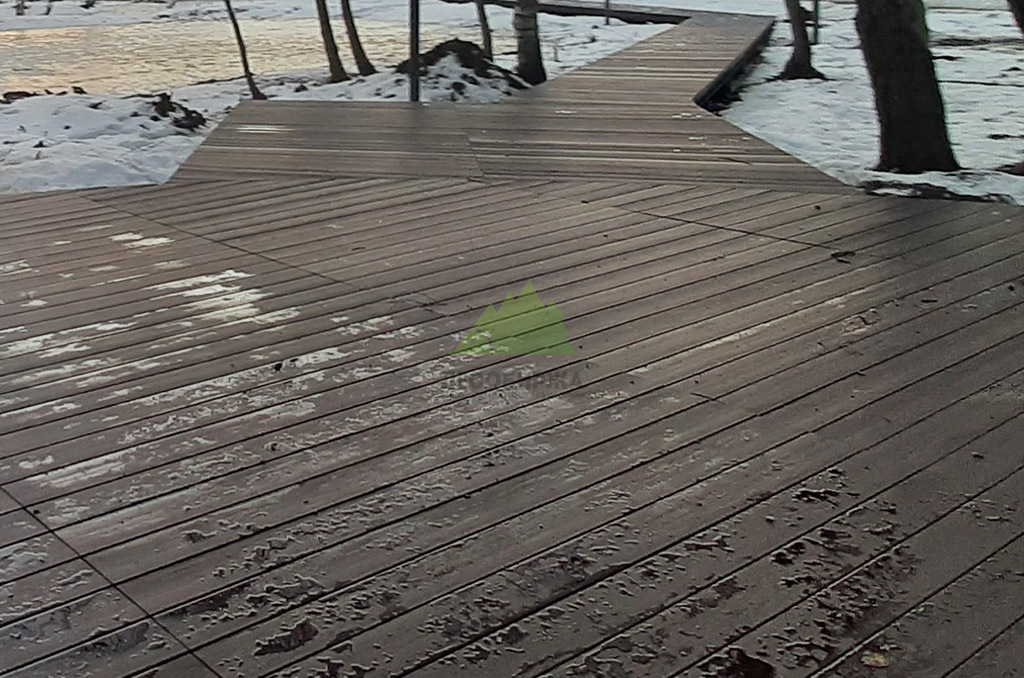 - Влагостойкость и морозоустойчивость: композит не коробится и не растрескивается, устойчив к соли и бытовой химии.