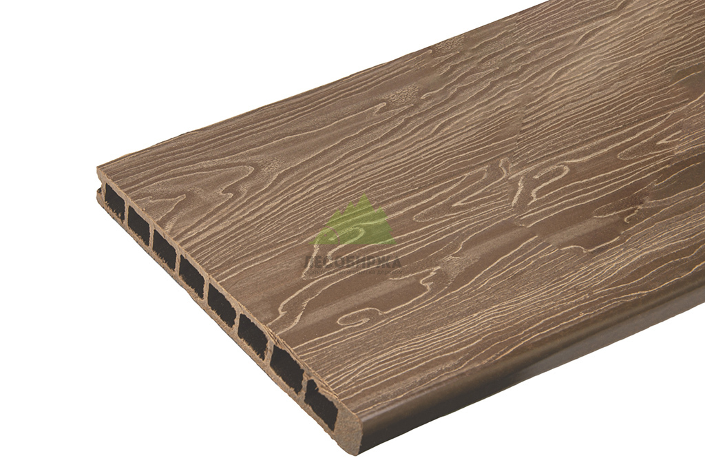 Ступень пустотелая ДПК TalverWood 3D 310х25х4000, орех — легкий и прочный элемент для аккуратного оформления кромок и лестничных узлов террас. Пустотелая конструкция снижает вес и упрощает монтаж, 3D-рельеф повышает сцепление на мокрой поверхности, а теплый оттенок орех визуально смягчает контур настила и хорошо сочетается с камнем, бетоном и деревом.