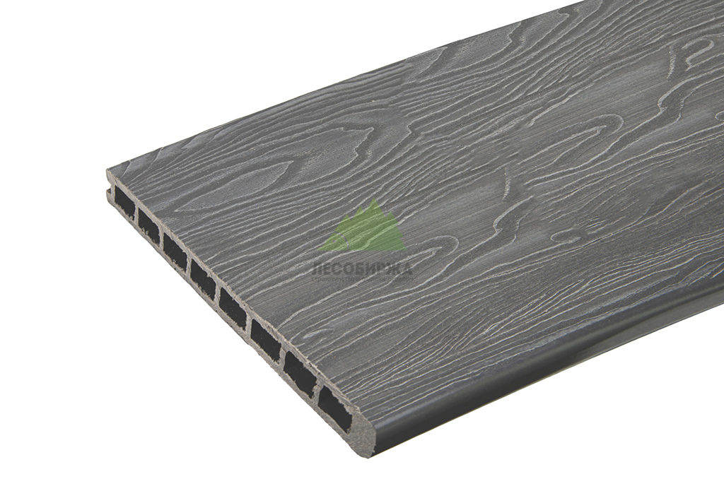Ширина 310 мм перекрывает край настила одной деталью без узких доборов. Толщина 25 мм с продольными рёбрами жёсткости равномерно распределяет нагрузку в проходных зонах, длина 4000 мм уменьшает количество стыков и ускоряет сборку. Композит не впитывает влагу, не образует заноз и не требует покраски — обслуживание сводится к регулярной мойке.