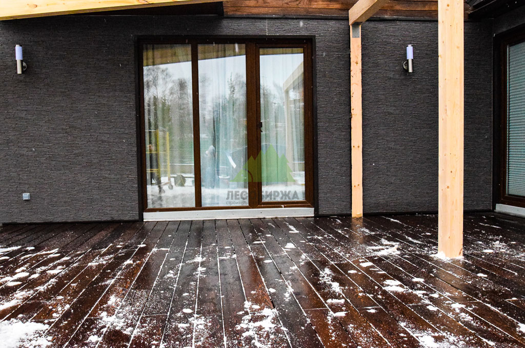 Укладка выполняется по жёсткому основанию с заданным шагом лаг, подобранным под толщину 28 мм и предполагаемую эксплуатационную нагрузку. Между досками оставляют технологические зазоры для стока воды и компенсации сезонных подвижек древесины. Для крепления используют террасные саморезы или системный скрытый крепёж, рассчитанный на работу с лиственницей.