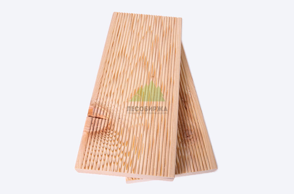 брали доску вельвет из лиственницы в сорте АВ для пола на террасе. Пока впечатления только приятные. Хороший материал, а главное с долгим сроком использования, красивый, не скользячий после дождя. Простоял зиму без повреждений и изменений, не обманули продавцы с ЛесоБиржа и на этом спасибо.