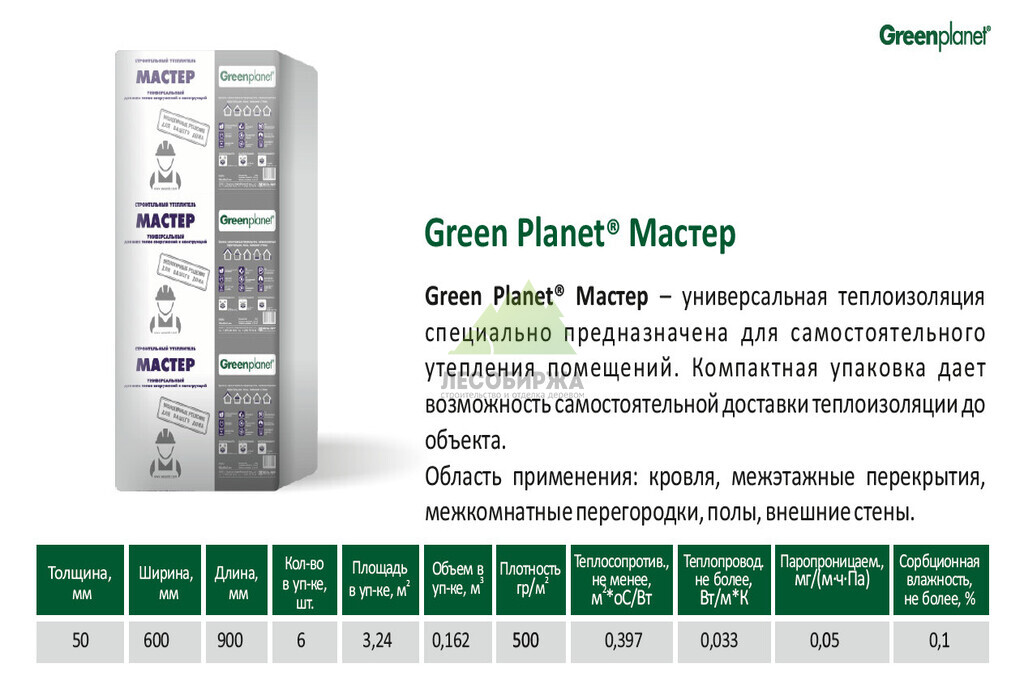 Оставьте свой отзыв о товаре: Утеплитель Green Planet Мастер 600х100х900