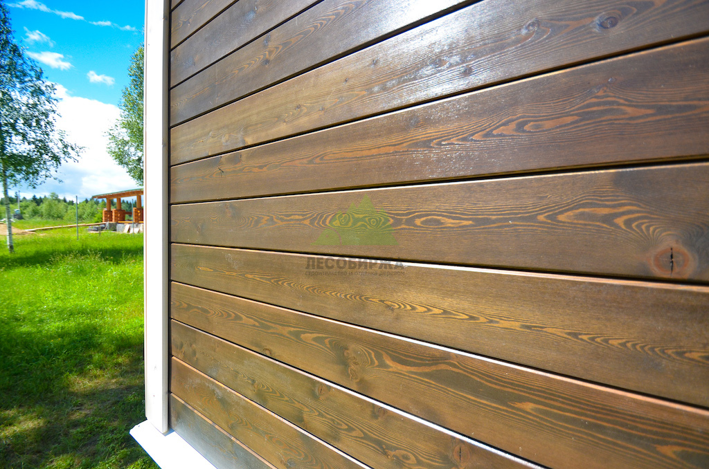 - Установка накладок (140х20 мм сорта "ПРИМА") на углы дома, обеспечивающая не только защиту торцов, но и создание стильного контраста с основным цветом фасада.