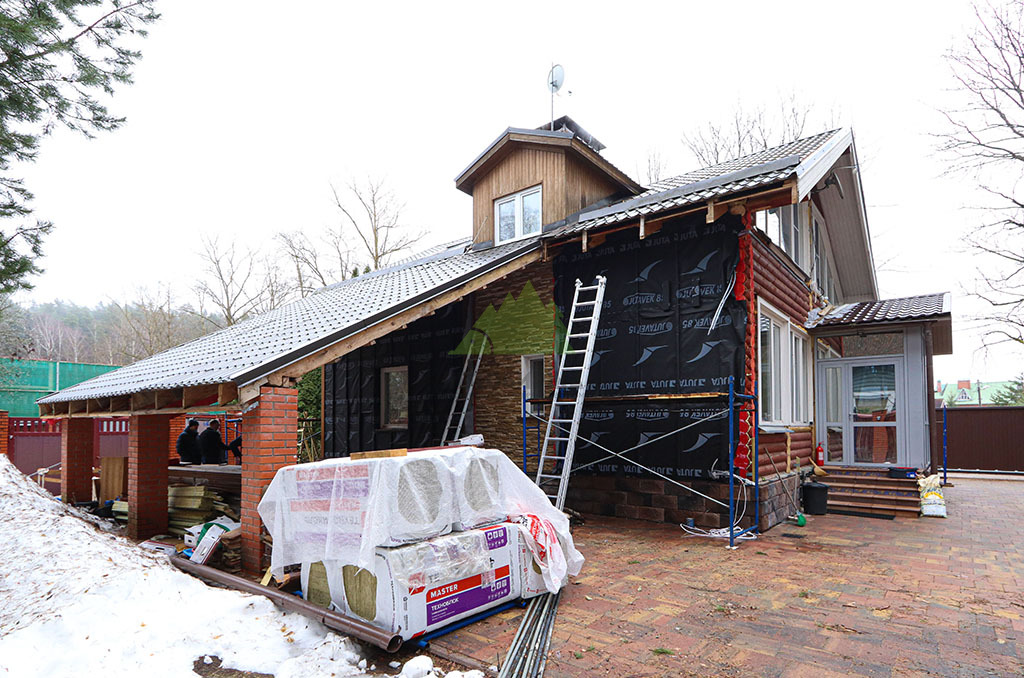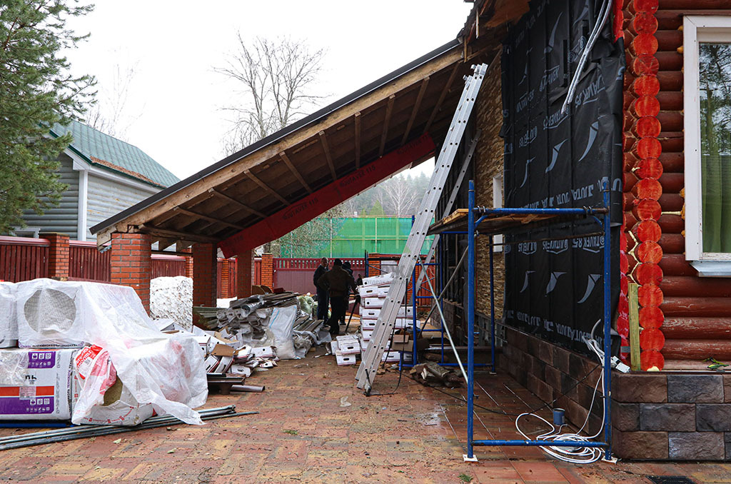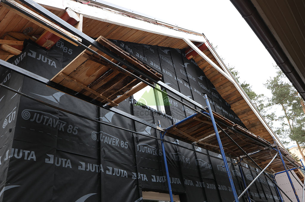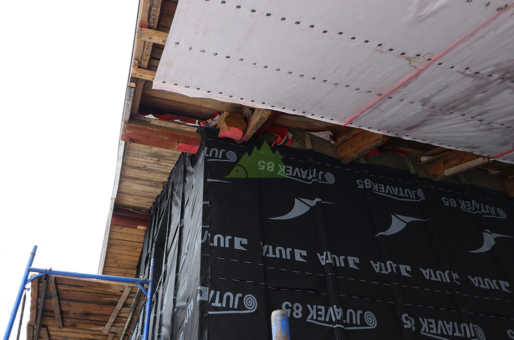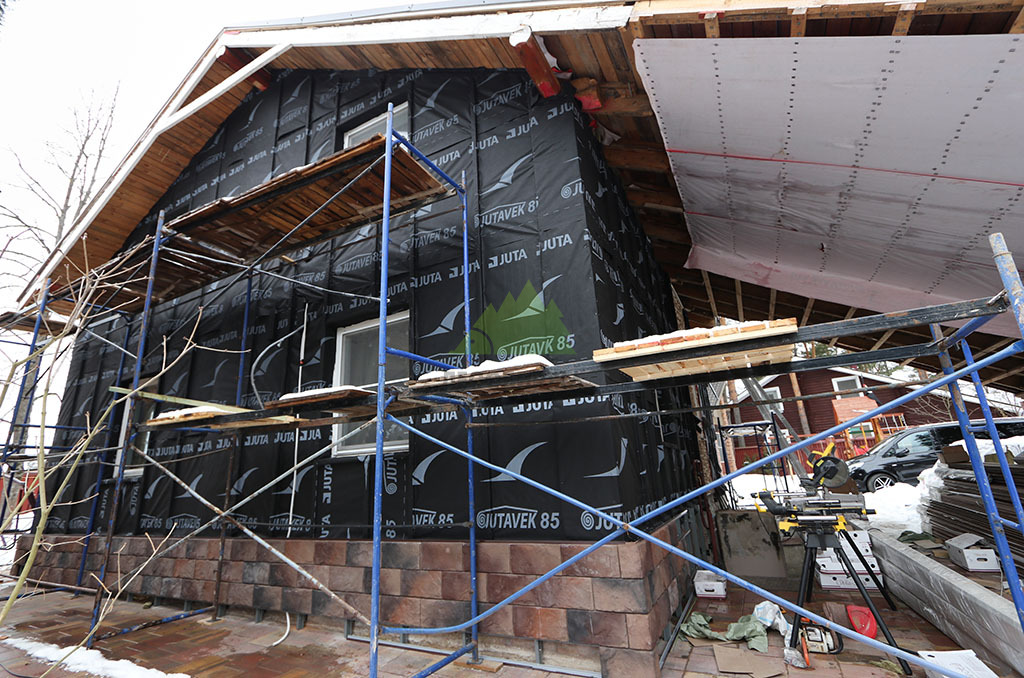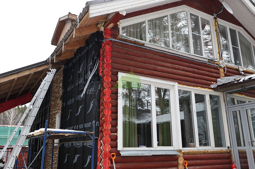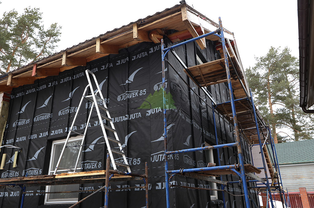 Процесс работы начался с тщательной подготовки поверхности бревенчатого дома. Наши специалисты провели осмотр, убедились в отсутствии дефектов и при необходимости выполнили локальные подготовительные работы. Затем был произведен монтаж обрешетки, необходимой для создания вентилируемого зазора между стеной и новым фасадным покрытием. Вентилируемый зазор – это ключевой элемент для деревянных домов, предотвращающий скопление влаги, развитие плесени и продлевающий срок службы как самого дома, так и новой отделки.
