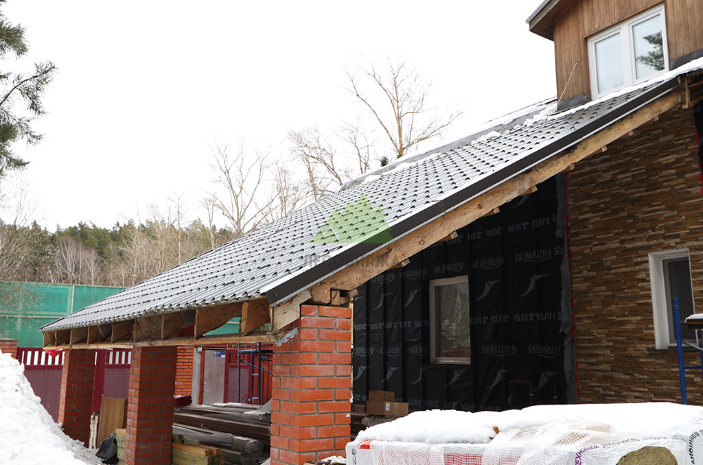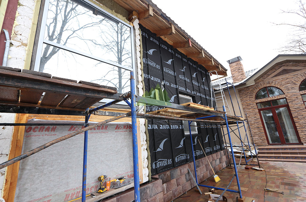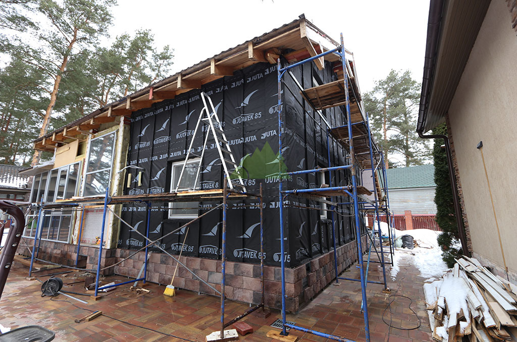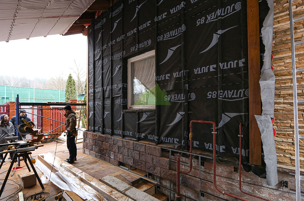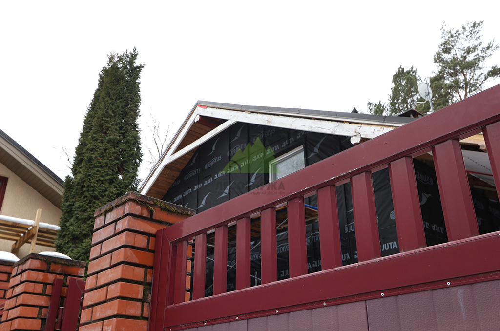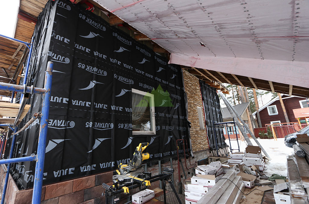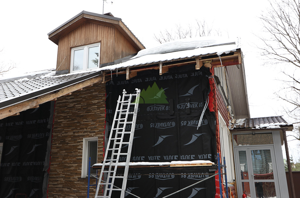 Процесс работы начался с тщательной подготовки поверхности бревенчатого дома. Наши специалисты провели осмотр, убедились в отсутствии дефектов и при необходимости выполнили локальные подготовительные работы. Затем был произведен монтаж обрешетки, необходимой для создания вентилируемого зазора между стеной и новым фасадным покрытием. Вентилируемый зазор – это ключевой элемент для деревянных домов, предотвращающий скопление влаги, развитие плесени и продлевающий срок службы как самого дома, так и новой отделки.