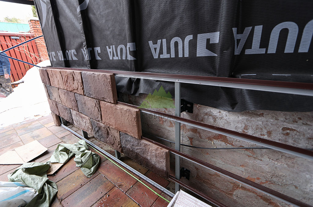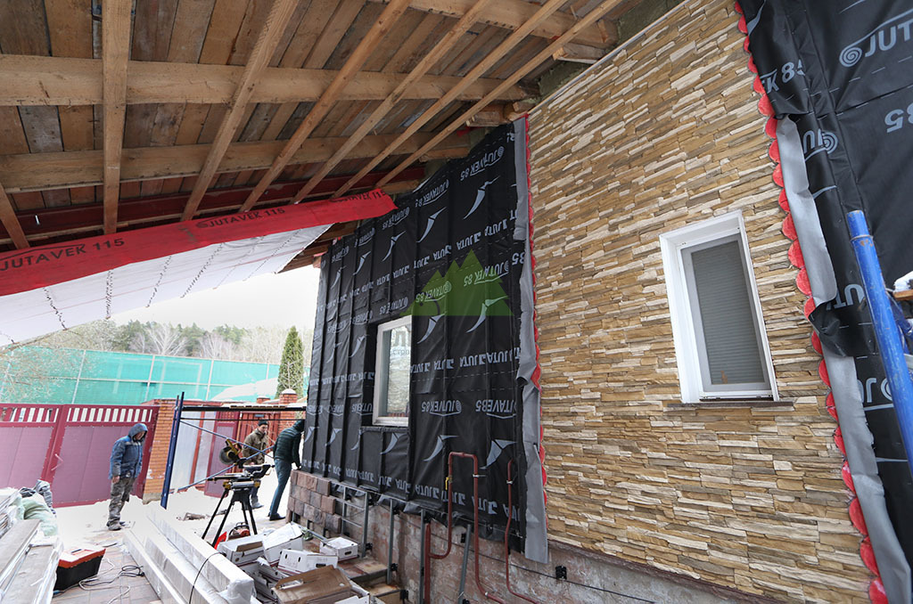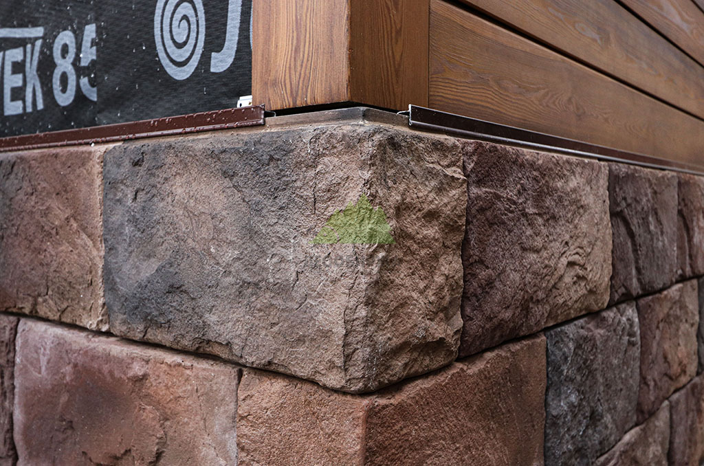Параллельно велись работы по облицовке цоколя искусственным камнем White Hills. Этот процесс также требовал высокой квалификации и аккуратности. Подготовка основания, нанесение специального клея, укладка камня с соблюдением рисунка и расшивка швов – каждый этап выполнялся с соблюдением технологий и рекомендаций производителя. Результат – монолитная, надежная и визуально привлекательная основа для дома.