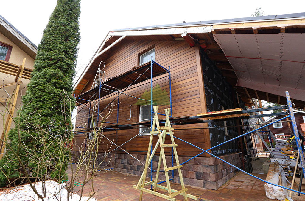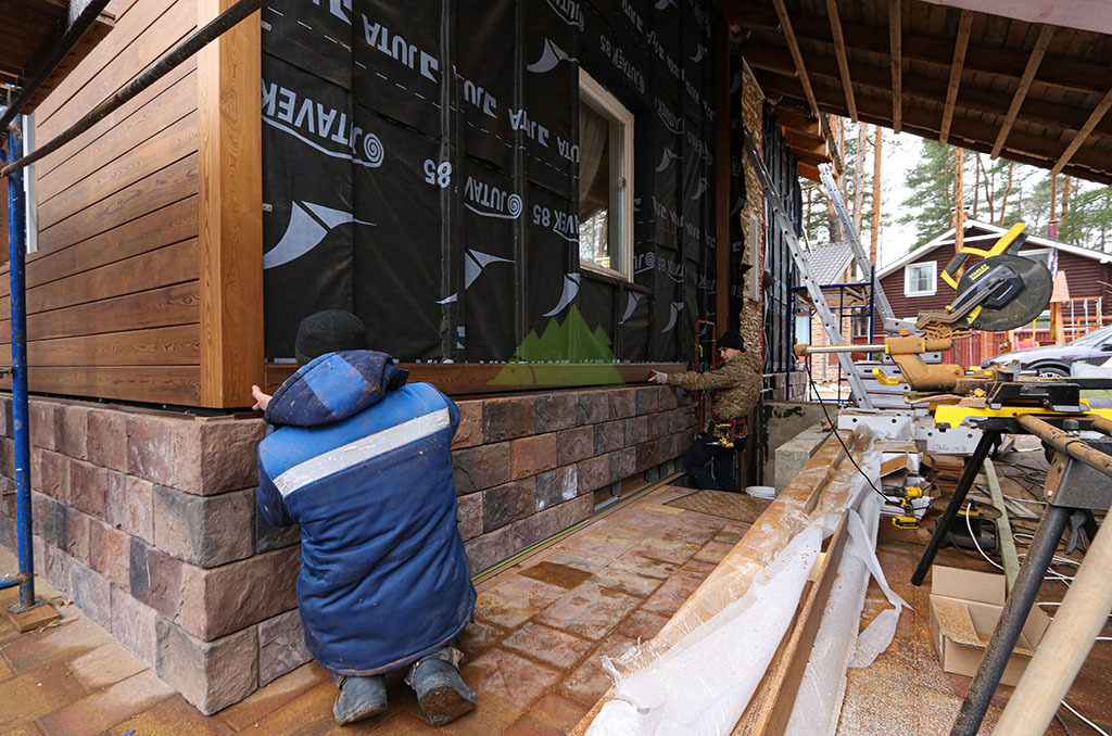 - Профессиональный монтаж: Опытные бригады, знающие все нюансы работы с деревянными фасадами и облицовкой цоколя, обеспечивают безупречное качество и соблюдение технологий.
