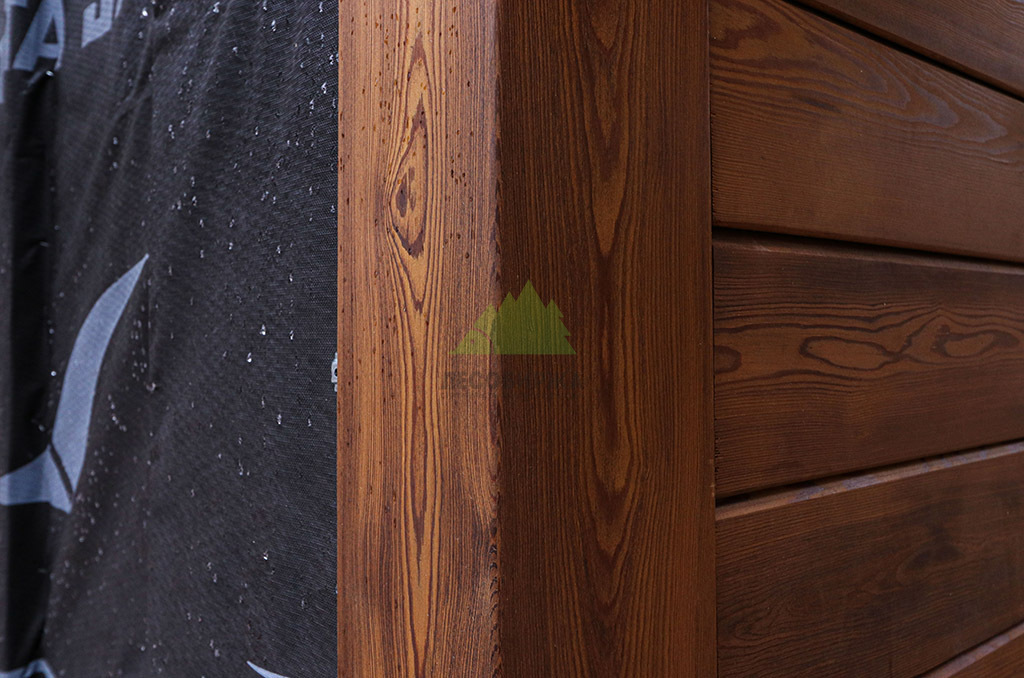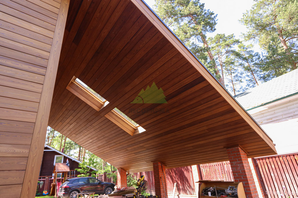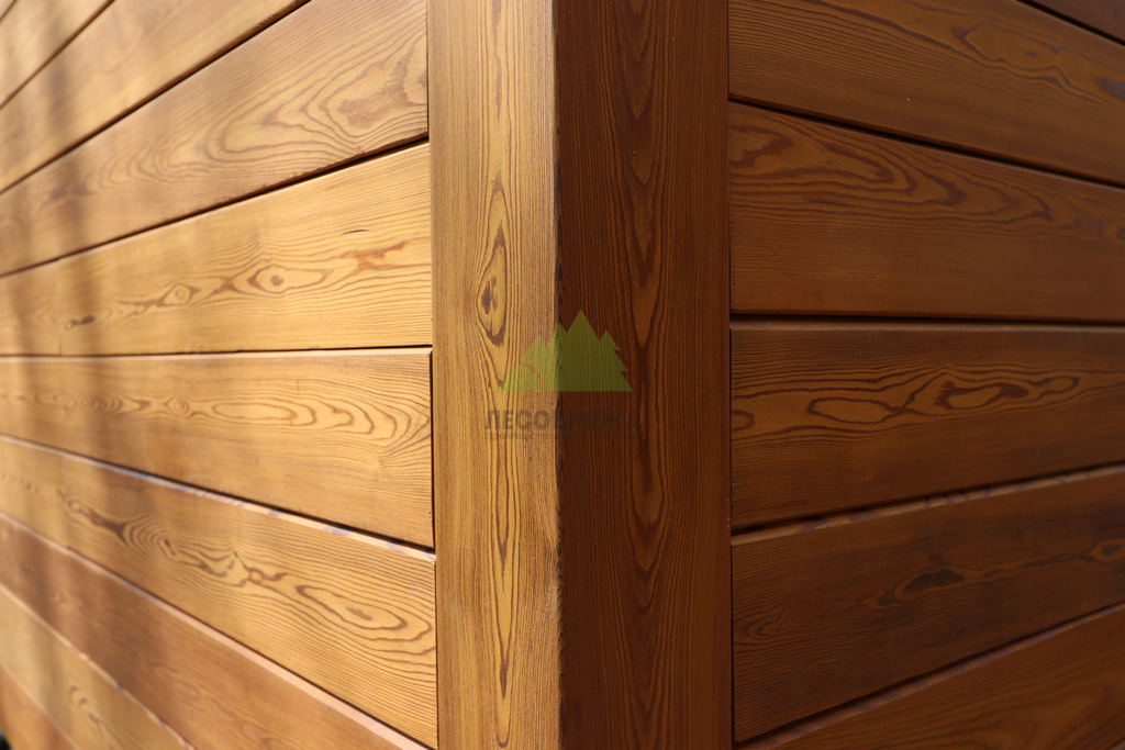 Для покраски планкена клиент выбрал масло Renner M300 в оттенке TV 5064 – решение, которое позволило добиться глубокого, насыщенного цвета и дополнительной защиты древесины. Особенностью нашего подхода является производственная покраска. Это не просто удобство, это гарантия качества и долговечности покрытия. При заводской покраске каждый элемент обрабатывается со всех сторон в строго контролируемых условиях: оптимальная температура, влажность, равномерное нанесение состава и его полное высыхание. Такой подход исключает риски, связанные с погодными условиями на объекте, обеспечивает глубокое проникновение масла в структуру древесины и формирует прочное, износостойкое покрытие, которое будет служить гораздо дольше, чем при ручной покраске на месте. Кроме того, это значительно сокращает сроки выполнения работ на объекте, минимизируя дискомфорт для домовладельцев.