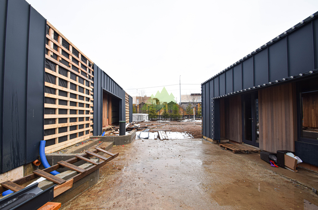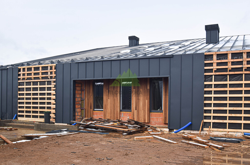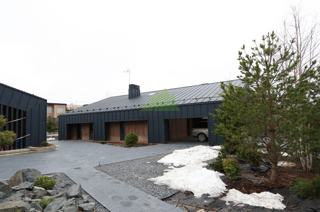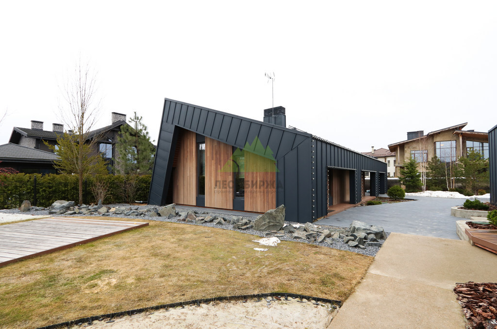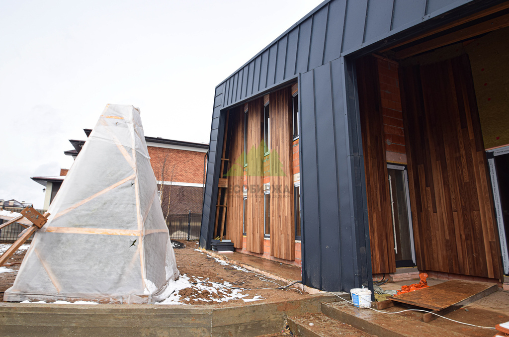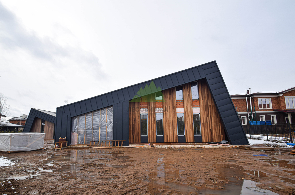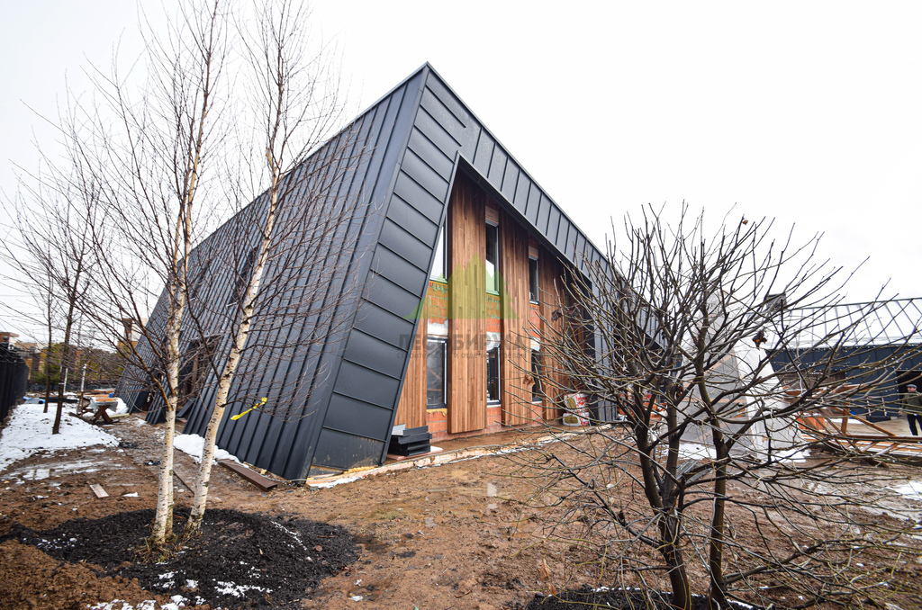 Клиент обратился в Лесобиржу-Спб с комплексной задачей по внешней отделке своего загородного дома в коттеджном поселке Карельский Ключ, расположенном в Ленинградской области. Его ключевым желанием было не просто обшить фасад, а создать по-настоящему уникальный, современный и долговечный архитектурный облик, способный выдерживать специфические погодные условия региона – высокую влажность и значительные перепады температур. Заказчик стремился к эстетическому превосходству и функциональной надежности. В частности, он выразил интерес к использованию комбинированного фасада с применением инновационных материалов. Перед нашими специалистами стояла задача разработать и смонтировать надежную металлическую подсистему, выполнить качественное утепление "пирога" фасада и осуществить чистовую отделку с использованием прямого планкена из термоясеня и фальцевых листов. Особое внимание уделялось вертикальной укладке планкена "вразбежку" для создания динамичного и оригинального рисунка, а также обеспечению идеальной геометрии и цветовой гармонии фасада. Клиент ожидал получить не только визуально привлекательный, но и максимально функциональный, энергоэффективный и простой в уходе фасад, который служил бы долгие годы, подтверждая его выбор в пользу натуральных и современных решений. Основные характеристики объекта: