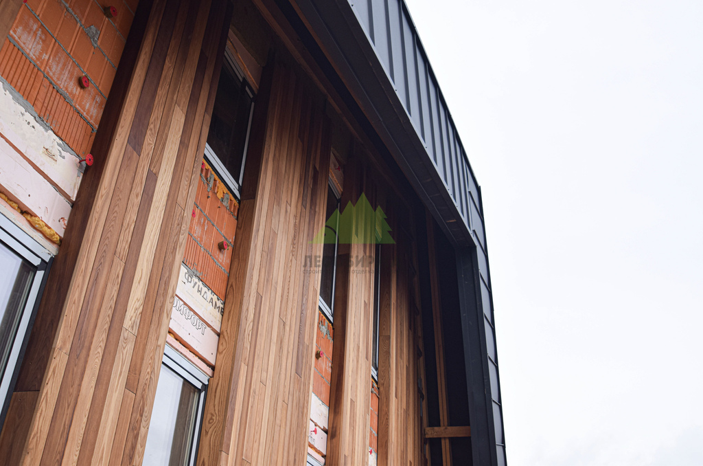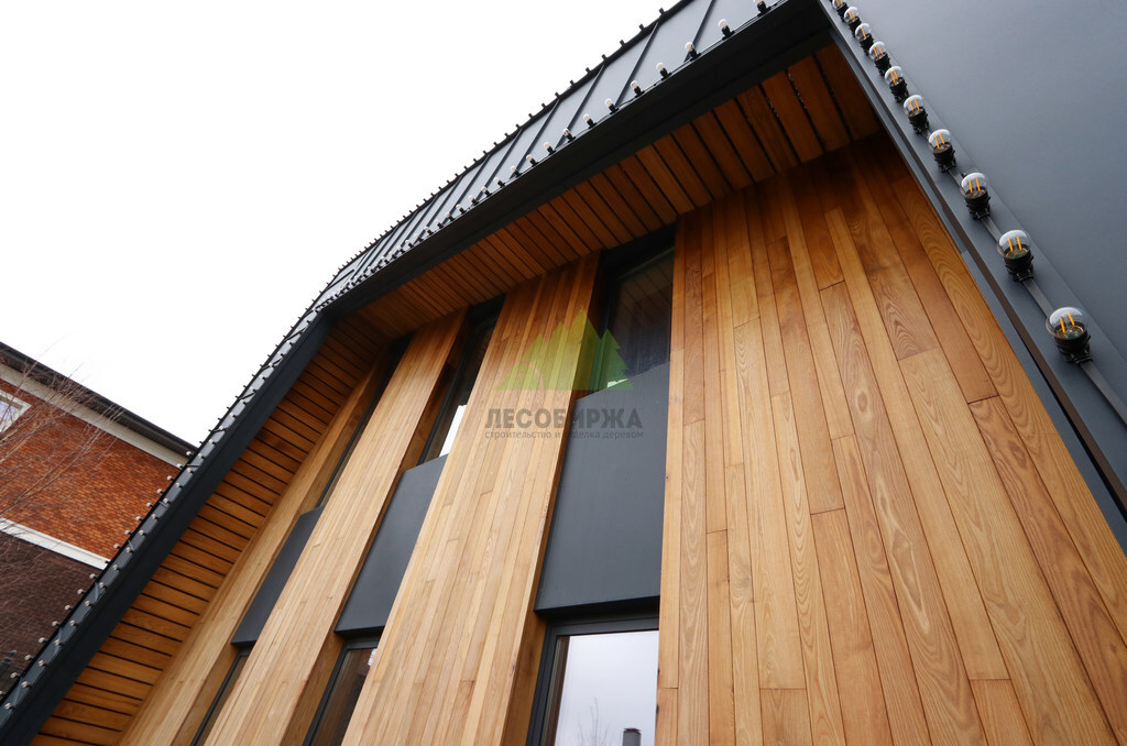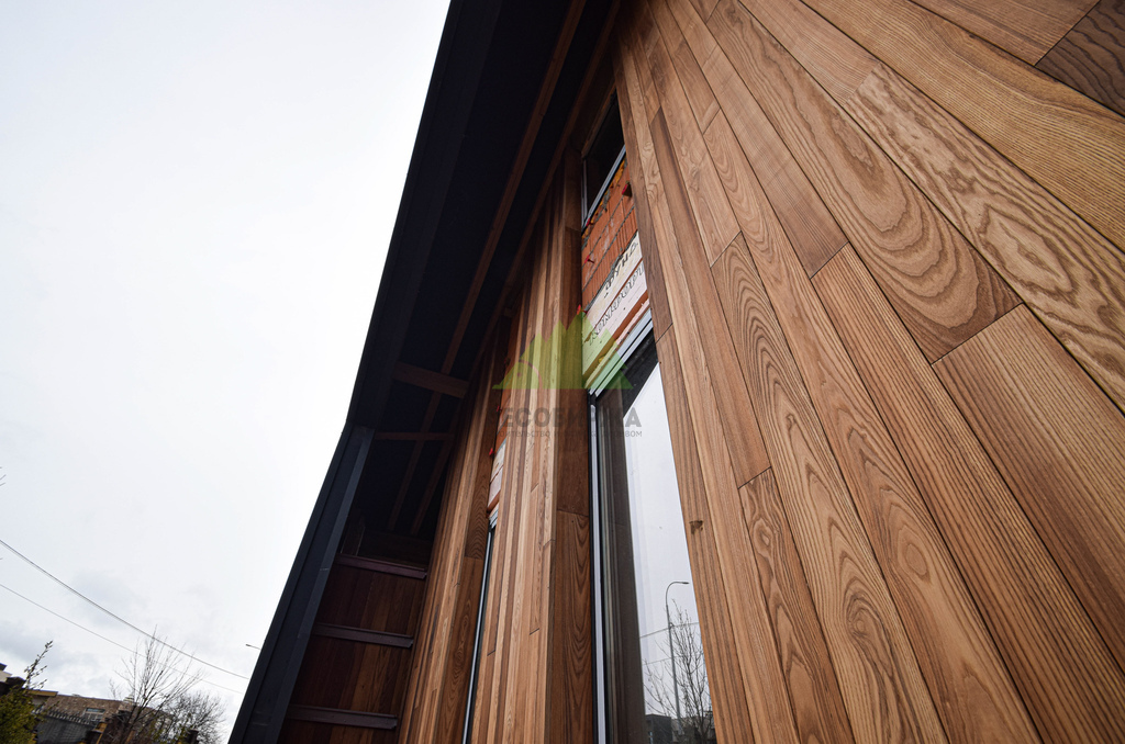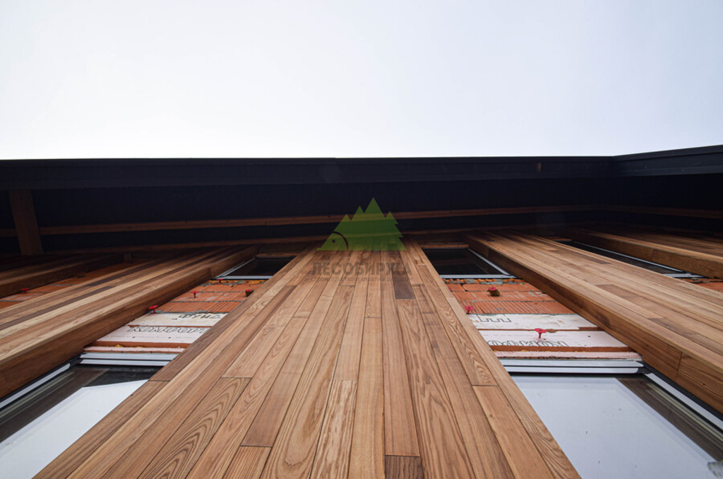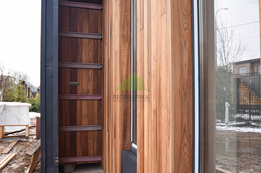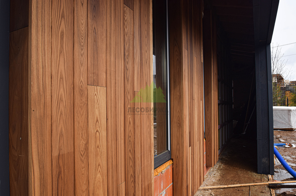 Отделка дома термоясенем вертикально «вразбежку» на металлической подсистеме | ООО "ЛесоБиржа" - СПб. Санкт-Петербург