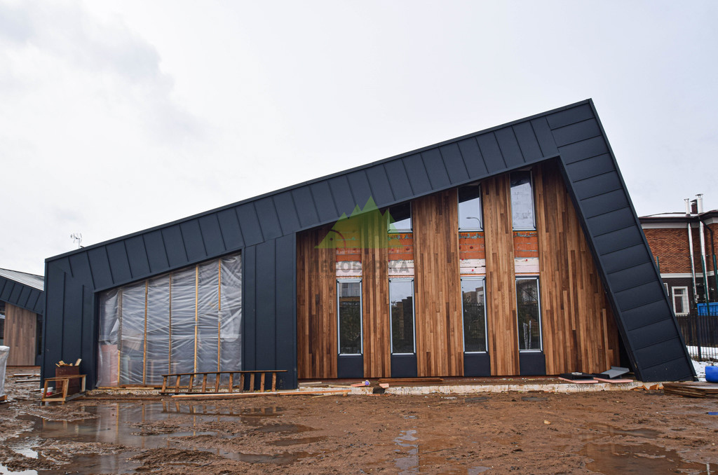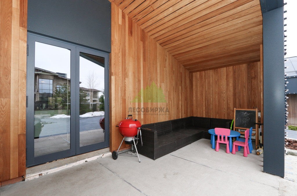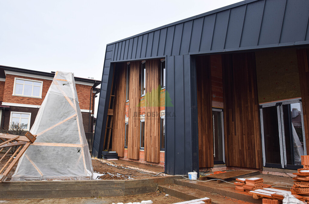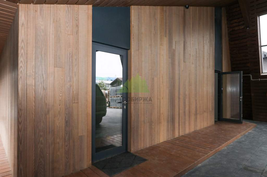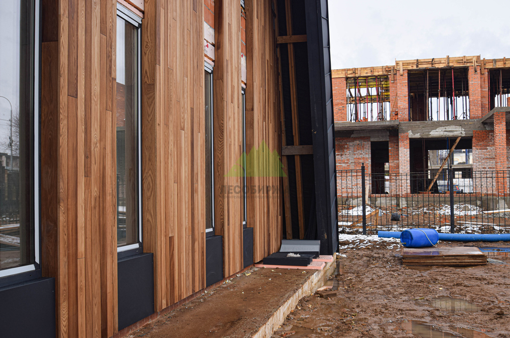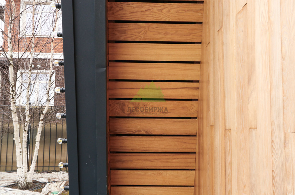 Отделка дома термоясенем вертикально «вразбежку» на металлической подсистеме | ООО "ЛесоБиржа" - СПб. Санкт-Петербург