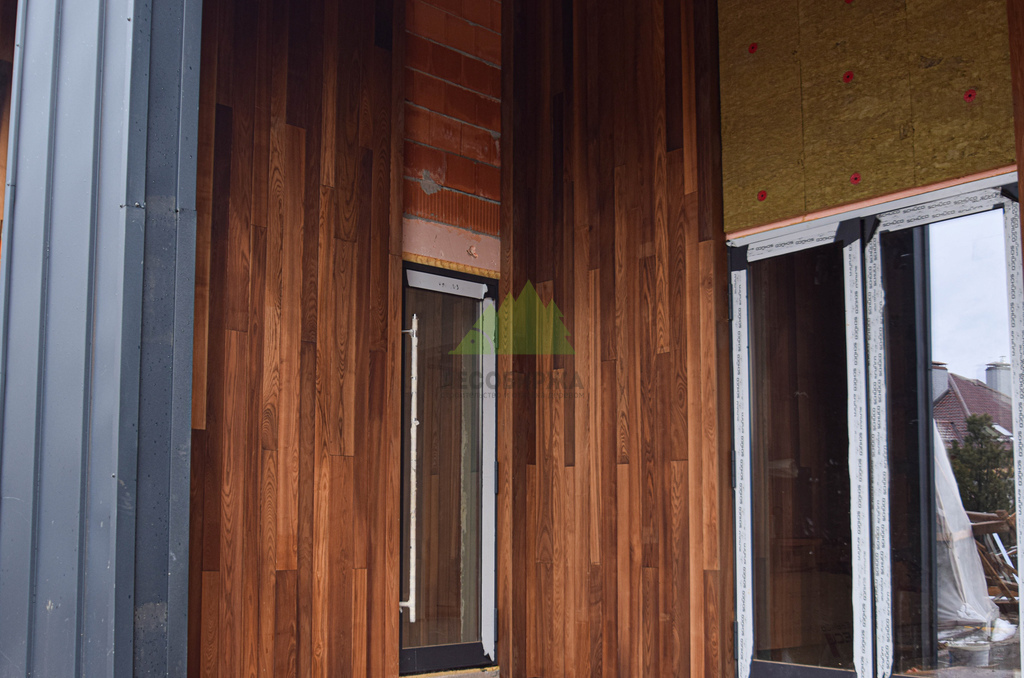 4. Долговечность. Срок службы фасада из термоясеня значительно превосходит показатели обычной древесины, что является выгодной инвестицией в будущее дома.