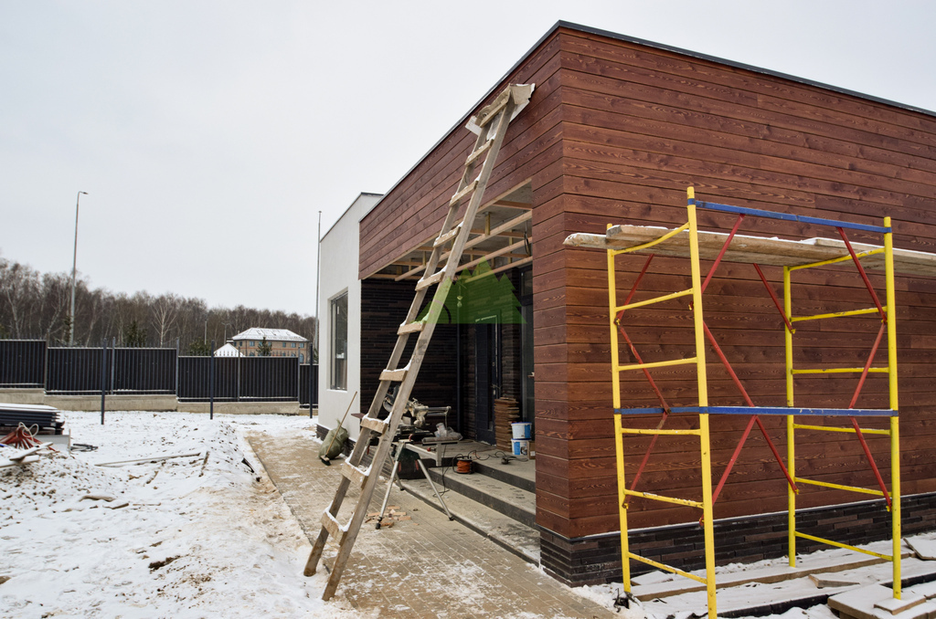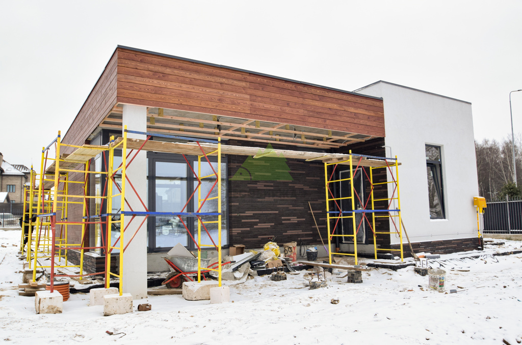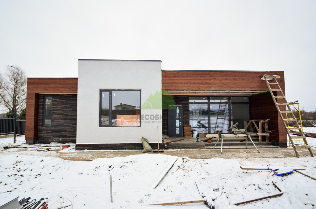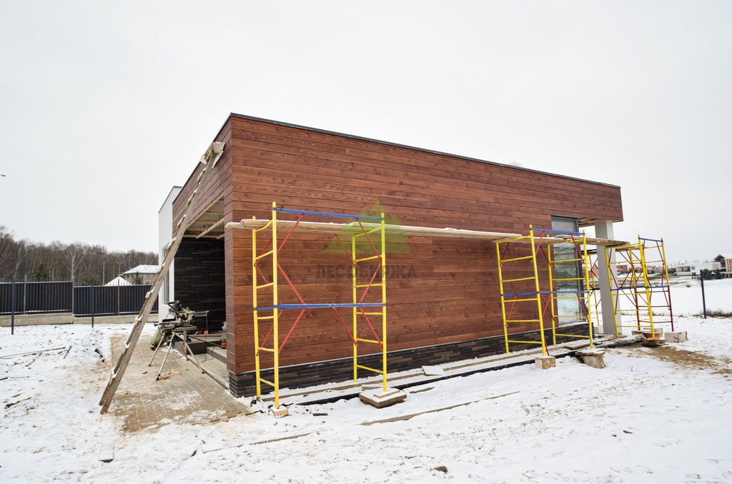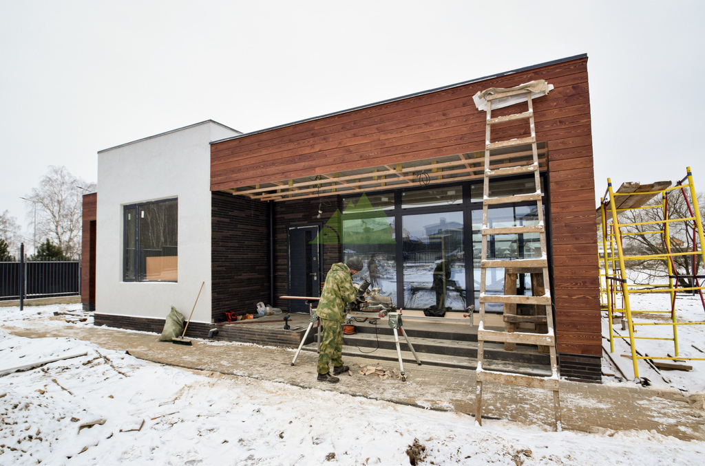 В Лесобиржу-Спб обратился заказчик с непростой, но вдохновляющей задачей: превратить фасад его одноэтажного загородного дома в поселке Красавица, расположенном в живописном уголке Ленинградской области, в подлинное архитектурное произведение. Дом, изначально построенный из пеноблоков, обладал необычной, почти индустриальной эстетикой с огромными панорамными окнами, что делало его воздушным и светлым, но одновременно требовало нестандартного подхода к отделке. Клиент стремился к созданию долговечного, выразительного фасада, сочетающего тепло натурального дерева с современными отделочными материалами, а также требовал исключительной точности в монтаже скошенного планкена с угловыми запилами под 45 градусов. Этот проект стал для нашей команды не просто очередной работой, а возможностью продемонстрировать глубокий опыт и мастерство Лесобиржи-Спб в реализации самых сложных и "ювелирных" идей.