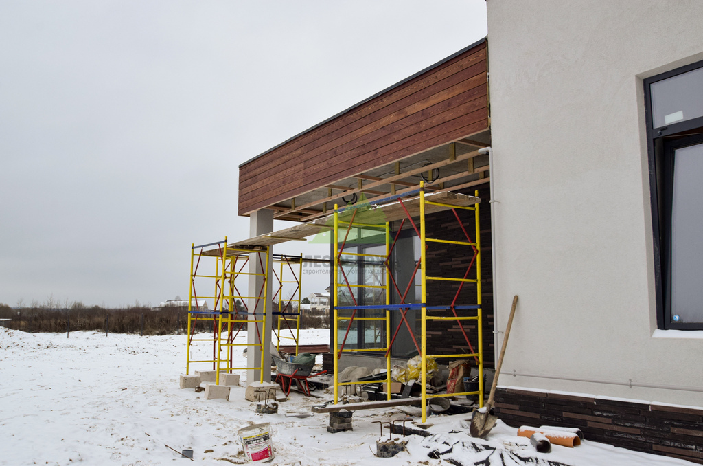 Для завершения образа и обеспечения функциональной защиты по низу фасада был предусмотрен и смонтирован отлив. Он играет ключевую роль в отведении дождевой воды и талых снегов подальше от основных стен дома, предотвращая их намокание, преждевременное старение и порчу. Этот элемент не только защищает фундамент и нижнюю часть фасада, но и придает всей конструкции аккуратный и завершенный вид.