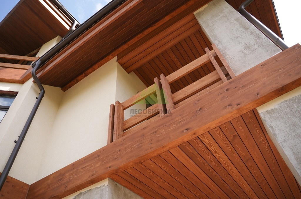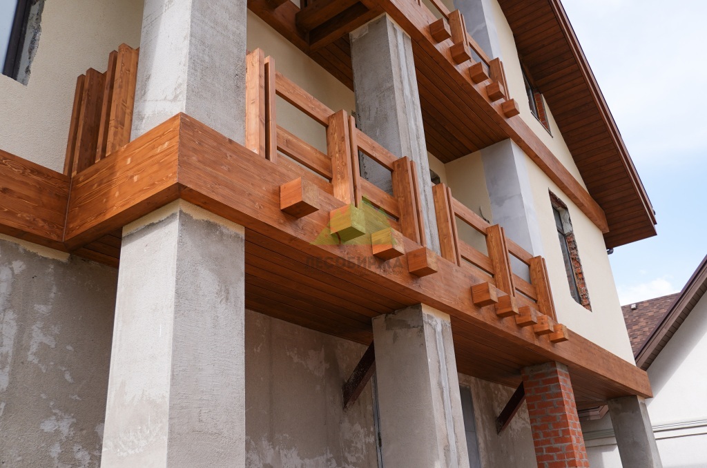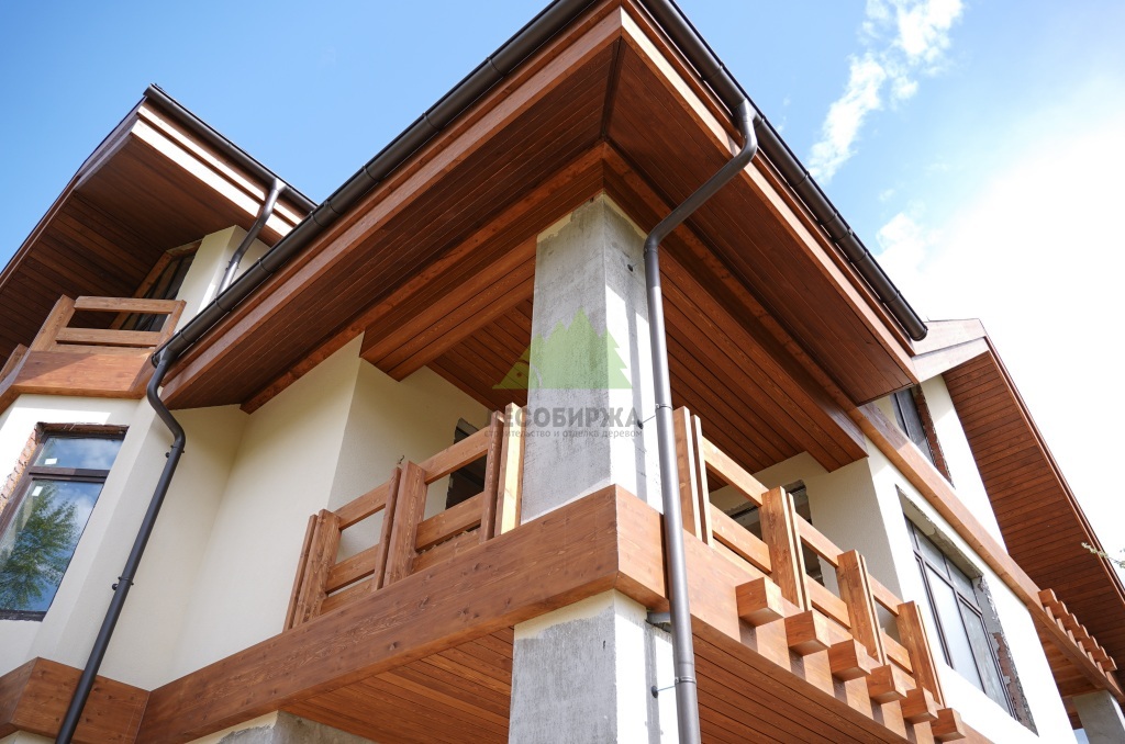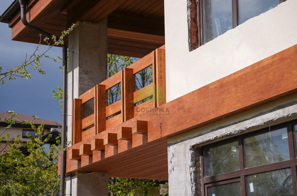 Центральным элементом дизайнерского решения стали декоративные деревянные пояса. Клиент выразил желание использовать прямой планкен из сибирской лиственницы – материал, который мы, в Лесобирже-Спб, ценим за его исключительные свойства. Сибирская лиственница, выращенная в суровых условиях, обладает уникальной плотностью, твердостью и природной устойчивостью к влаге, гниению и насекомым. Это идеальный выбор для внешней отделки в условиях влажного климата Ленинградской области, так как она не требует сложного ухода и сохраняет свой первозданный вид десятилетиями.