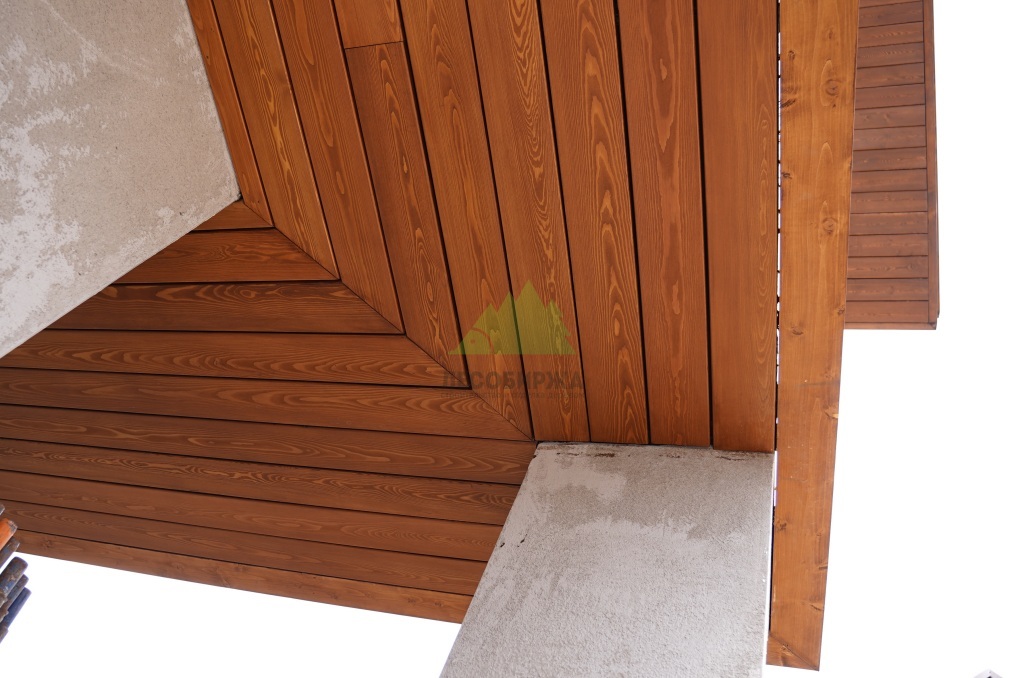 Для реализации проекта мы подобрали планкен высшего сорта, без сучков и дефектов, что гарантировало безупречный внешний вид. Перед монтажом каждая доска планкена была обработана специальными защитными маслами и пропитками, которые подчеркнули естественную текстуру лиственницы и усилили её защитные свойства от ультрафиолета и влаги. Это позволило создать глубокий, насыщенный цвет, который прекрасно гармонировал с "каменной" штукатуркой.
