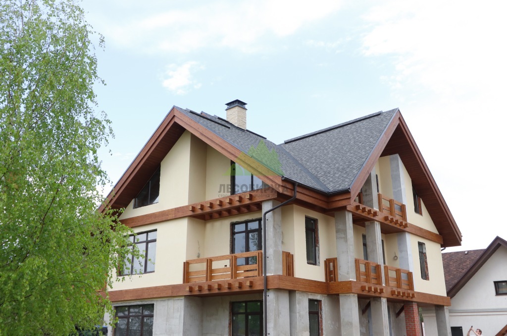 Реализация этого проекта в Заостровье – еще одно подтверждение профессионализма и клиентоориентированности Лесобиржи-Спб. Фасад дома был полностью преображен, став воплощением стиля, прочности и гармонии с природой. Сочетание декоративной штукатурки, имитирующей камень, с теплыми поясами из сибирской лиственницы создало неповторимый облик, который выделяет дом среди других и придает ему индивидуальность. Кровля получила надежную и долговечную основу, готовую к многолетней службе.