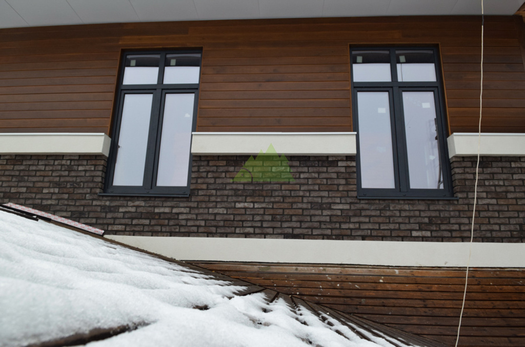 Эстетическая сторона лиственницы также неоспорима. Ее древесина обладает неповторимой текстурой и богатой палитрой естественных оттенков, которые со временем приобретают благородный серебристый налет, если не использовать защитные покрытия, или сохраняют заданный цвет благодаря качественной покраске. В данном случае, клиент предоставил уже окрашенный материал, что подчеркнуло глубину и выразительность древесного рисунка, идеально сочетающегося с фактурой камня. Стабильность геометрии лиственницы, то есть ее минимальная подверженность деформациям при изменениях влажности и температуры, гарантирует, что фасад будет выглядеть безупречно на протяжении всего срока службы, сохраняя четкость линий и форм.