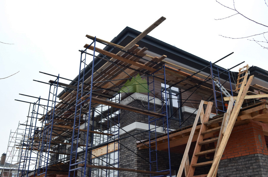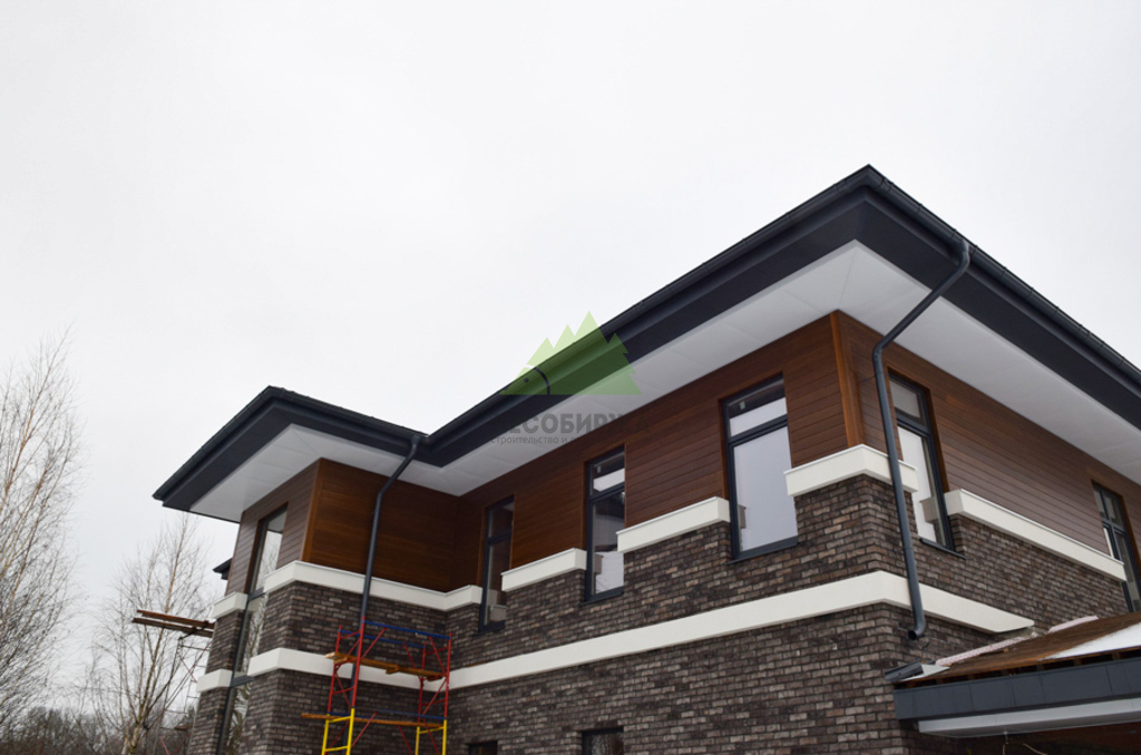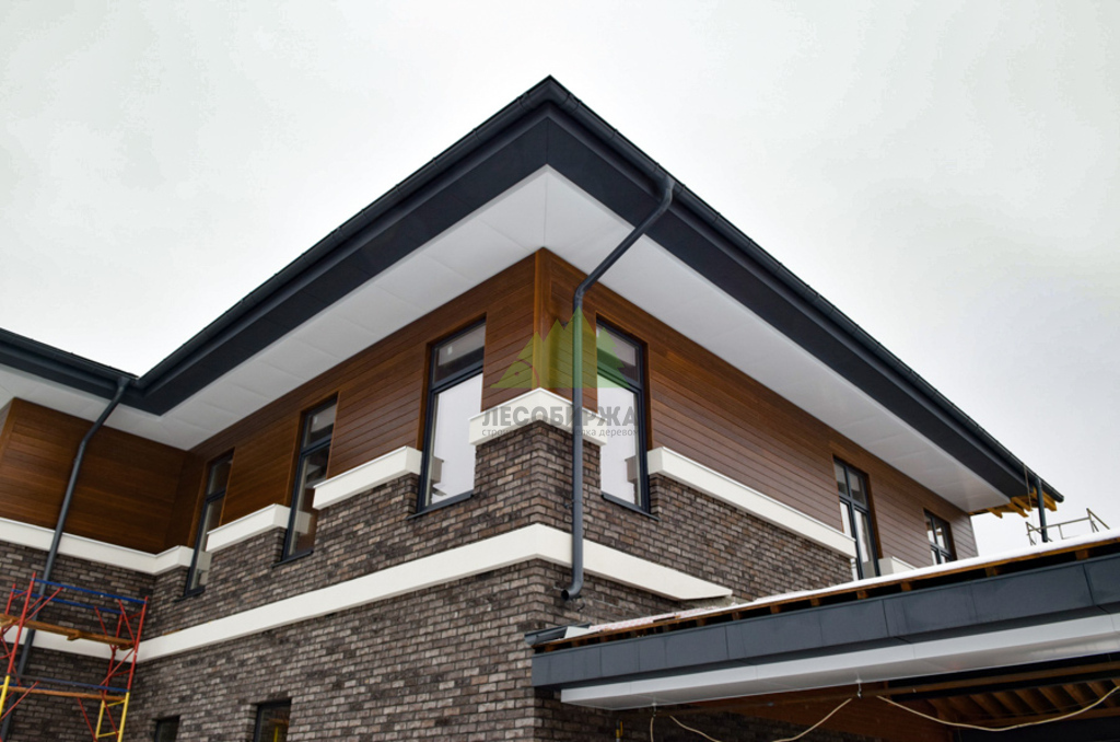 Процесс монтажа фасадного планкена требует высокой точности и профессионализма. Наши специалисты начали с установки вентилируемой обрешетки из сухих строганных брусков хвойных пород. Поскольку дом не требовал дополнительного утепления, подсистема монтировалась непосредственно на несущие стены, обеспечивая прочную и ровную основу для будущего фасада. Для крепления планкена использовался скрытый крепеж, предоставленный заказчиком. Хотя выбранный тип крепежа имел свои особенности, наши мастера с многолетним опытом работы виртуозно справились с задачей, обеспечив безупречный и равномерный зазор между досками. Именно такие моменты отличают профессионалов Лесобиржи-Спб: мы не просто выполняем работу, мы находим оптимальные решения даже в нестандартных ситуациях, гарантируя высочайшее качество и эстетику.