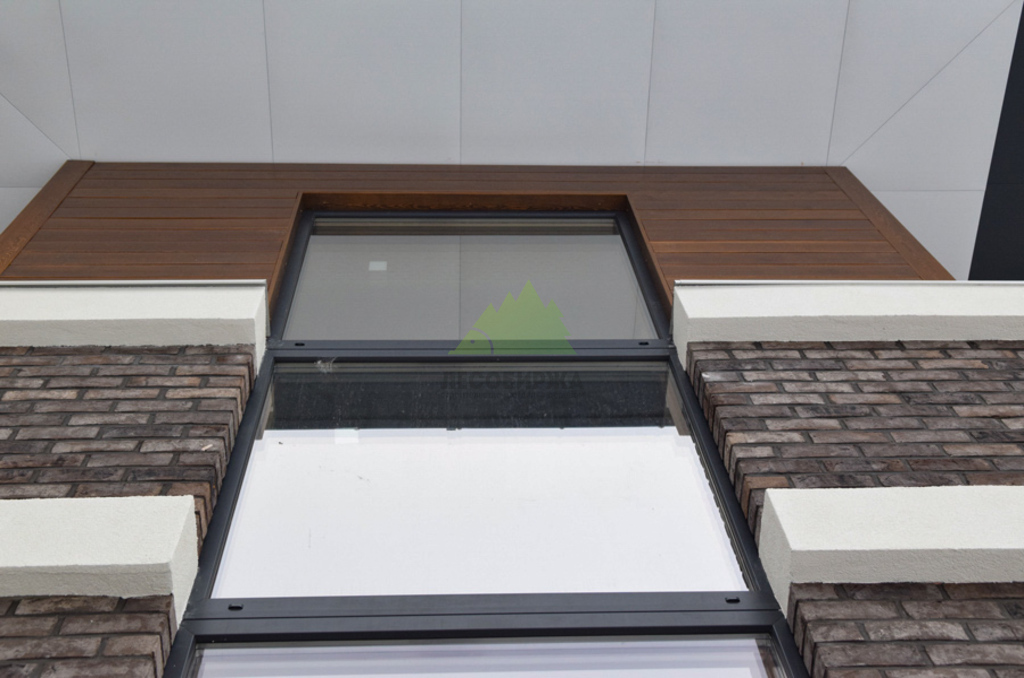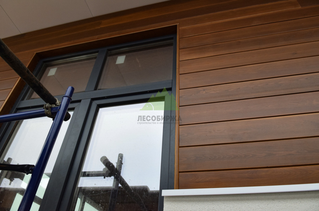Особое внимание уделялось деталям, которые формируют общий вид фасада. Планкен был смонтирован горизонтально, что позволило визуально выделить архитектурные элементы коттеджа и придать ему динамичность. Важной частью работы стало обустройство оконных и дверных проемов. Мы "принарядили" их декоративными планками из лиственницы, которые не только функционально защищают стыки, но и служат элегантным обрамлением. Все стыки были выполнены с исключительной аккуратностью, а угловые части фасада получили наше фирменное оформление – врезные или накладные декоративные Г-образные элементы, которые скрывают крепеж и создают чистые, строгие линии. Использование оцинкованных крепежных элементов, даже если они были предоставлены заказчиком, обеспечивает дополнительную защиту от коррозии, продлевая срок службы всей конструкции.