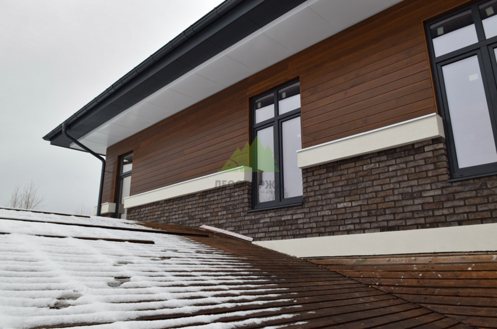 Заказчик имел четкое видение своего будущего дома: фасад должен был стать гармоничным сочетанием природной красоты лиственничного планкена и основательности натурального камня. Материал – скошенный планкен из лиственницы сорта Прима, уже готовый и покрашенный – был приобретен клиентом самостоятельно. Наша задача заключалась в безупречном монтаже этого материала на подготовленную обрешетку, профессиональном устройстве оконных и дверных проемов, установке системы отливов и, конечно, в реализации наших фирменных, врезных углов, которые придают фасаду завершенный и элегантный вид. Проект был интересен и своей спецификой: часть работ проводилась параллельно с деятельностью кровельщиков, что потребовало от нашей команды особой координации и гибкости. Мы всегда готовы к таким вызовам, ведь наша цель – достичь идеального результата, независимо от внешних обстоятельств.