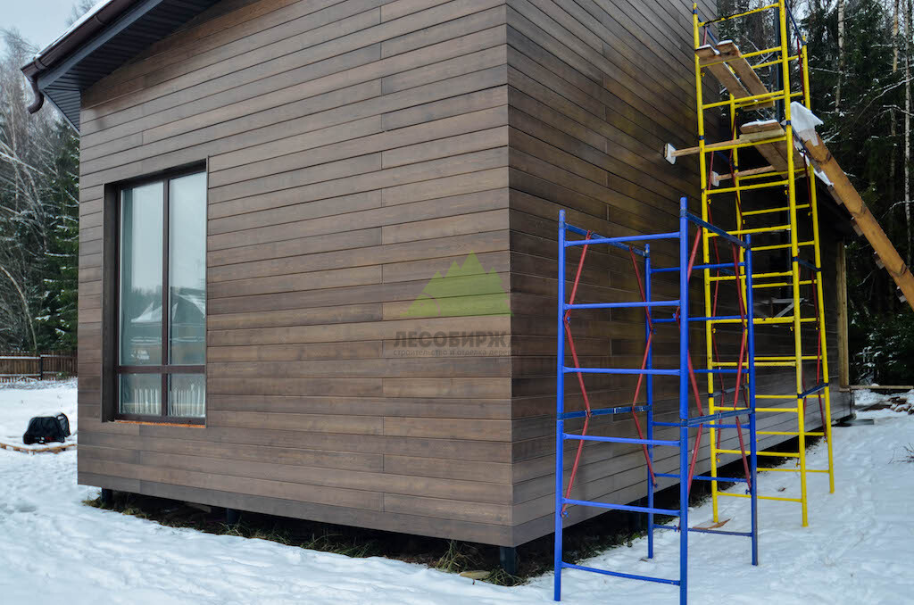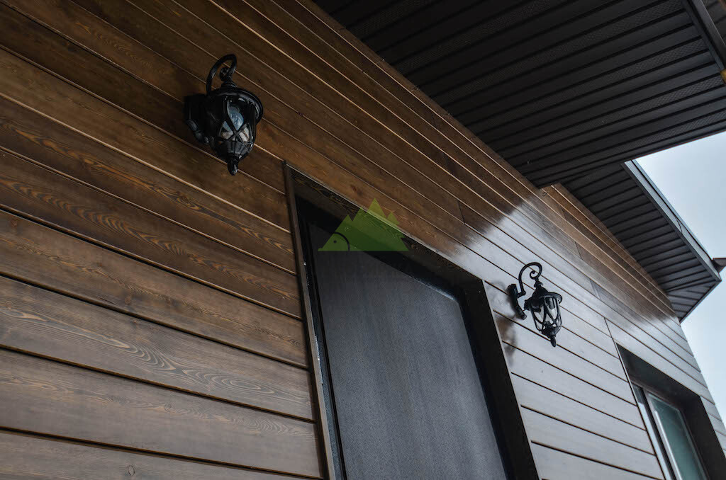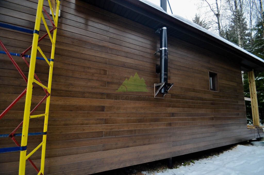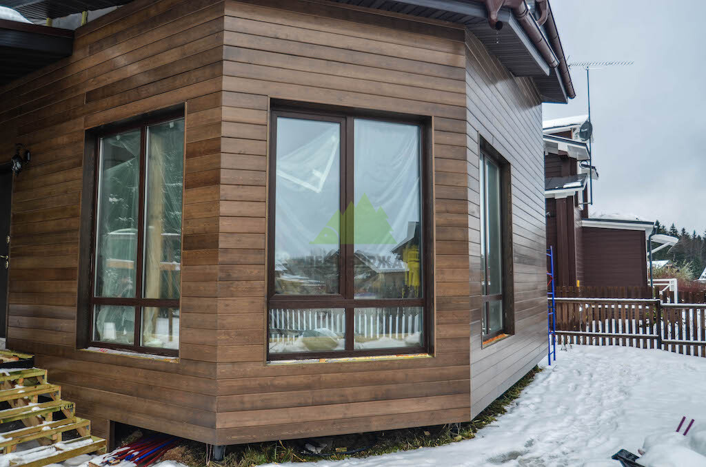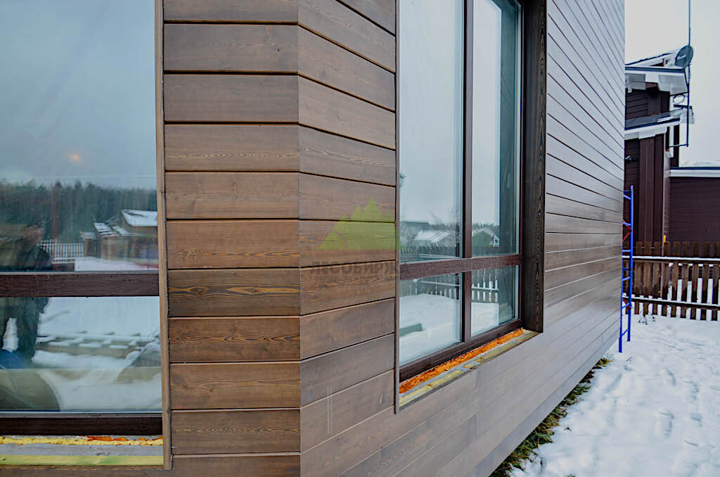 Фасад из скошенного планкена из сибирской лиственницы сорта «Экстра» под лаком | ООО "Лесобиржа" - СПб. Санкт-Петербург