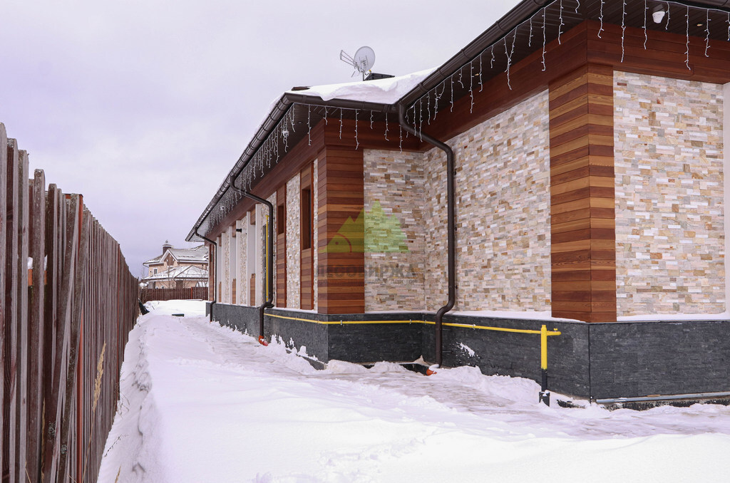 Для реализации проекта в Заповедном наши специалисты предложили использовать планкен из термолиственницы в нескольких тщательно подобранных оттенках. Это решение позволило создать динамичный и визуально интересный фасад, где каждый элемент вносит свой вклад в общую гармонию. Три выбранных цвета планкена не только прекрасно сочетаются друг с другом, но и идеально гармонируют с мраморным обрамлением, придавая дому монументальность и элегантность. Такая комбинация материалов выглядит не просто дорого, но и продуманно, создавая ощущение завершенности и безупречного стиля.