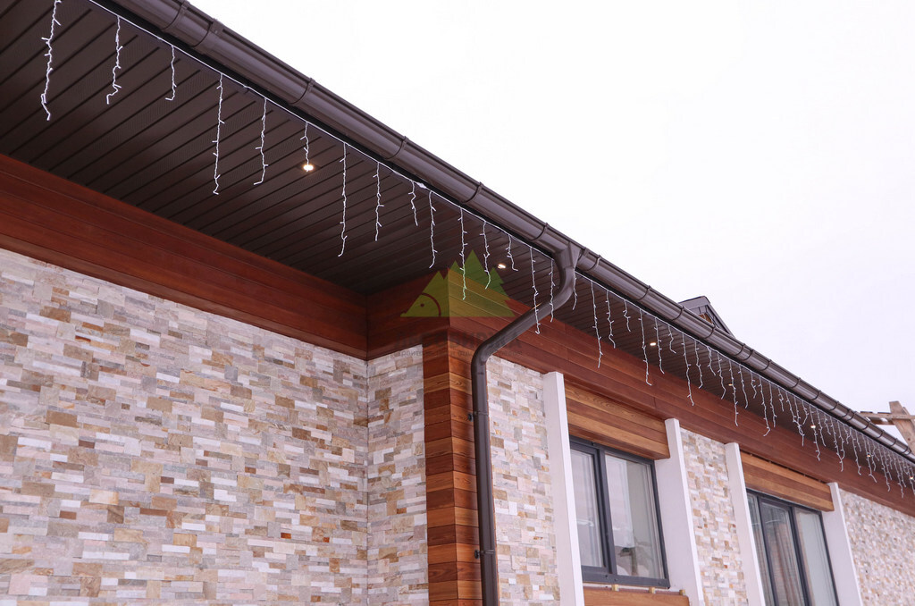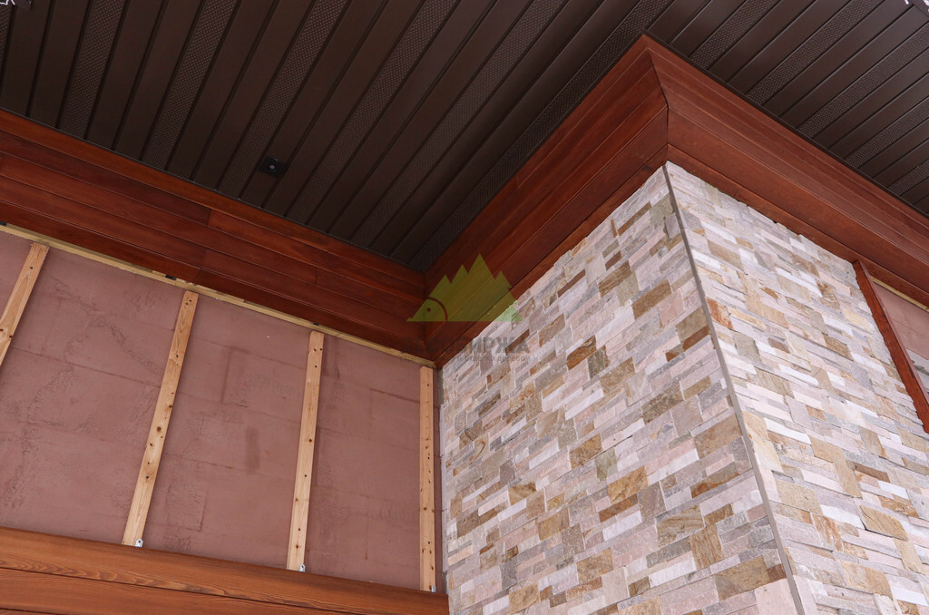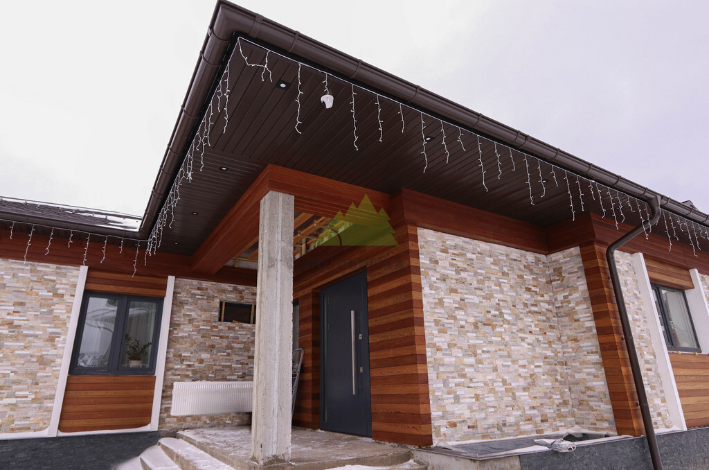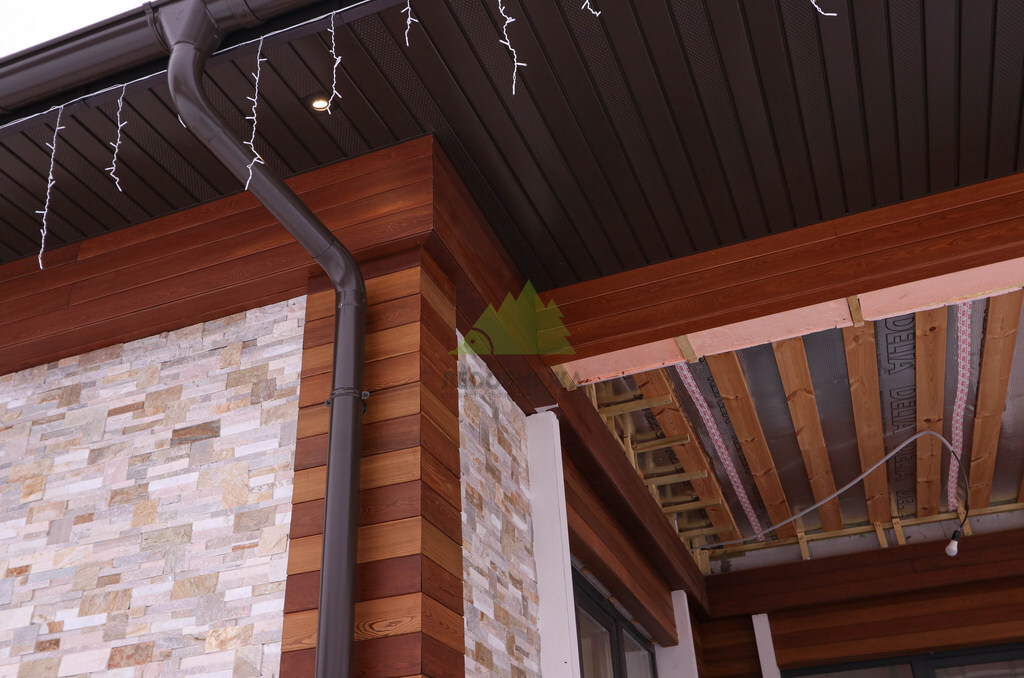 Особое внимание мы уделили монтажу. Для обеспечения максимальной эстетики и долговечности был выбран скрытый крепеж "Конструктор". Это инновационная система, состоящая из металлических пластин с ребрами жесткости, которая позволяет монтировать планкен без видимых элементов крепежа на лицевой стороне доски. Это создает эффект монолитной, бесшовной поверхности, что значительно повышает визуальную привлекательность фасада. Важной особенностью крепежа "Конструктор" является наличие стопора, который позволяет регулировать зазор между досками. Заказчик пожелал минимальный зазор – всего 2 мм. Это не только способствует созданию целостного облика, но и служит дополнительной защитой стен от проникновения влаги под обшивку, что особенно актуально для региона с высоким уровнем осадков.
