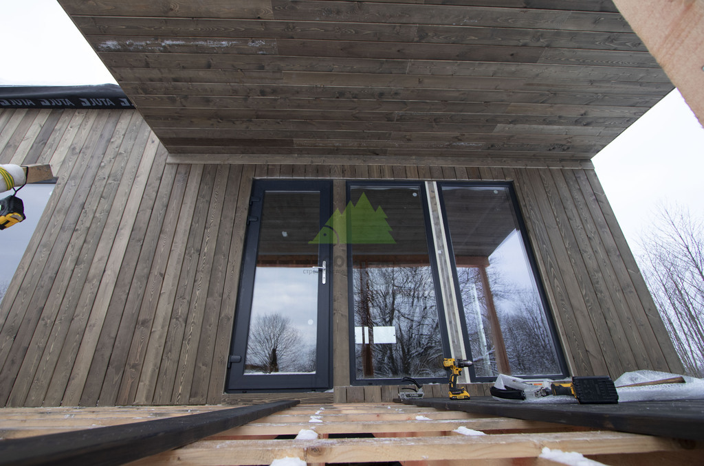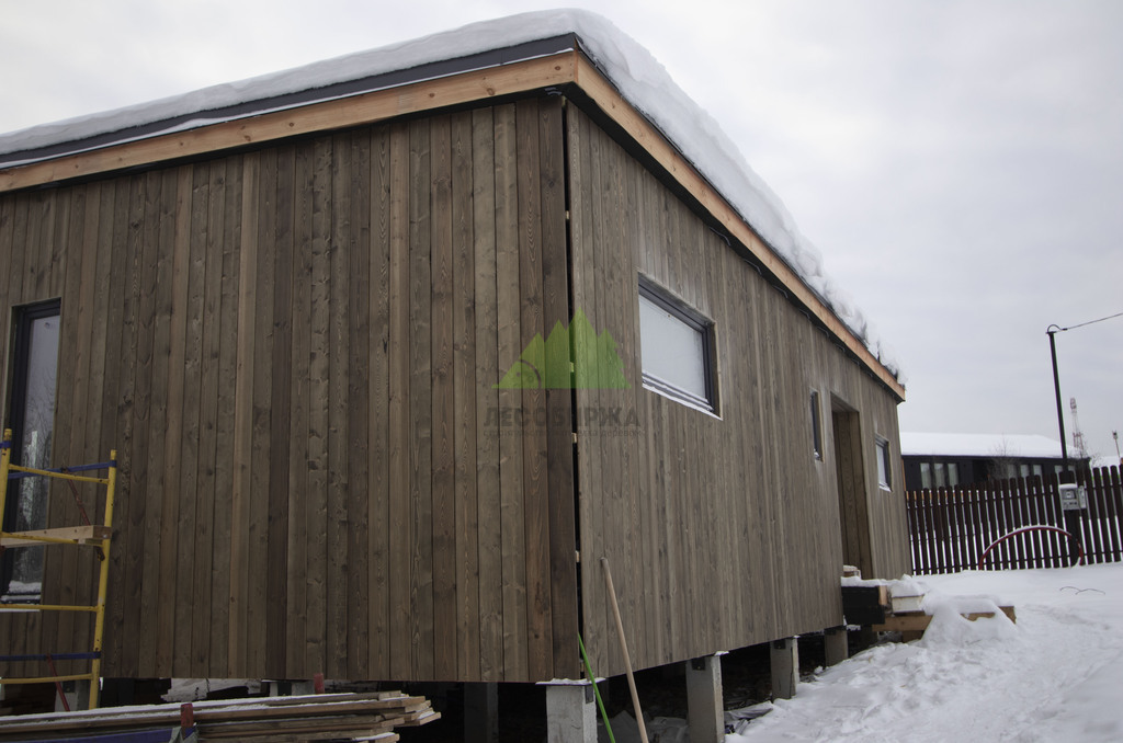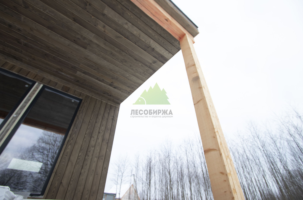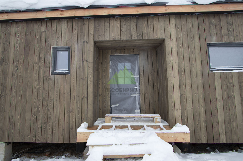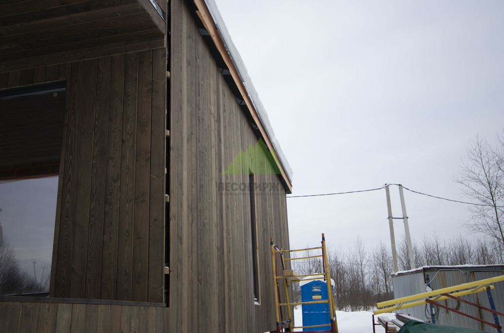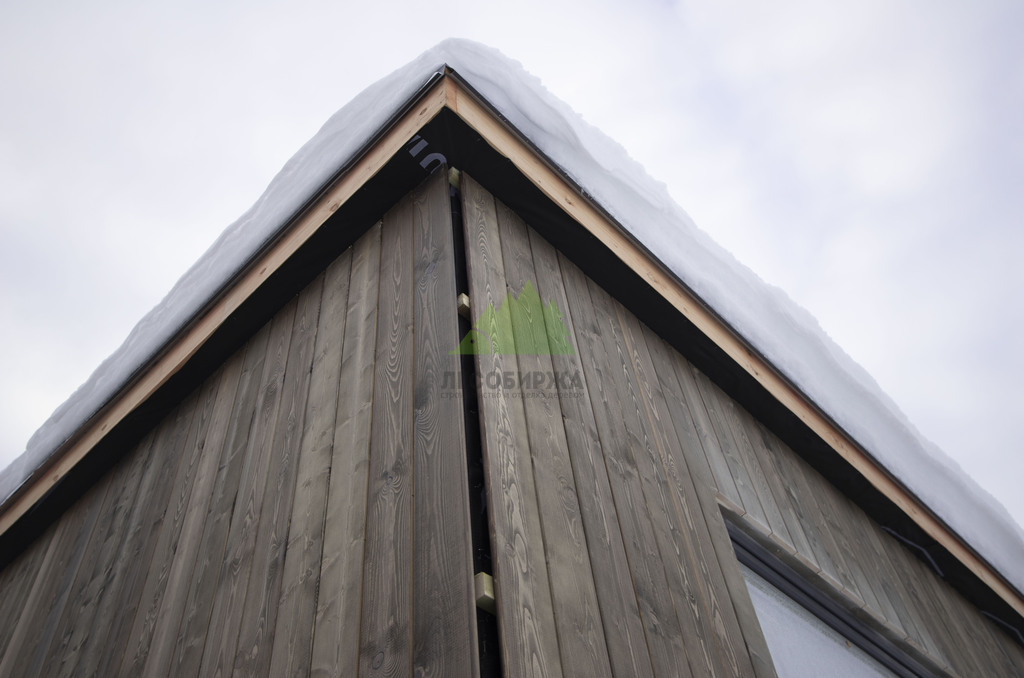 Заказчик этого проекта подошел к выбору материалов с особой тщательностью, проявив глубокое понимание эстетики и функциональности. В результате детальных консультаций с нашими экспертами, его выбор пал на прямой планкен из высококачественной сосны, шириной 145 мм. Это решение было продиктовано не только желанием добиться современного внешнего вида, но и стремлением к надежности. Особенностью проекта стало требование к заводской окраске материала: планкен был профессионально окрашен на производственной базе Лесобиржи-Спб. Такая предварительная обработка гарантирует идеальное, равномерное покрытие, а также значительно увеличивает срок службы древесины, защищая ее от влаги, ультрафиолета и биологических вредителей еще до монтажа. Вертикальная ориентация панелей планкена и использование скрытого крепежа CAMO были выбраны для создания монолитного, минималистичного образа, где внимание не отвлекается на элементы крепления, а весь фокус направлен на естественную красоту дерева и четкость линий.