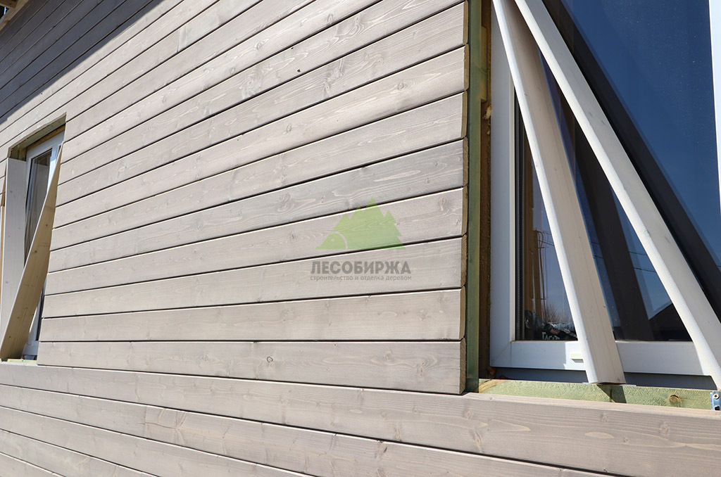 Далее приступили к монтажу скошенного планкена из хвои сорта АВ. Выбор хвои обусловлен её доступностью, отличными эксплуатационными характеристиками и прекрасным внешним видом. Сорт АВ гарантирует минимальное количество сучков и дефектов, что обеспечивает высокое качество конечного покрытия. Скошенный профиль планкена не только придаёт фасаду современный и динамичный вид, но и эффективно отводит дождевую воду, предотвращая её задержку на поверхности. Монтаж планкена осуществлялся скрытым способом, с использованием специализированных креплений, что исключает видимые шляпки саморезов и сохраняет целостность дерева, предотвращая появление трещин и сколов. Каждая доска тщательно подбиралась по цвету и текстуре для создания единой, гармоничной картины. Работы велись последовательно, снизу вверх, с обязательным контролем горизонтальности и вертикальности каждого ряда. Места стыков досок обрабатывались специальными герметиками для дополнительной защиты от влаги. После завершения монтажа планкен был покрыт высококачественным маслом с УФ-фильтром, специально разработанным для наружных работ. Это покрытие не только подчёркивает естественную красоту древесины, но и обеспечивает надёжную защиту от ультрафиолета, влаги, грибка и перепадов температур, сохраняя насыщенность цвета на долгие годы. Для Лесобиржи-Спб важно не только построить или обшить, но и обеспечить максимальную долговечность наших решений.