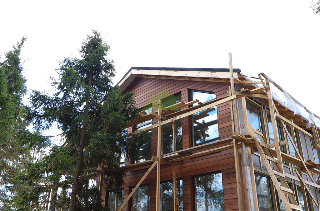 Отличная обшивка дома планкеном из термолиственницы в КП "Топаз"