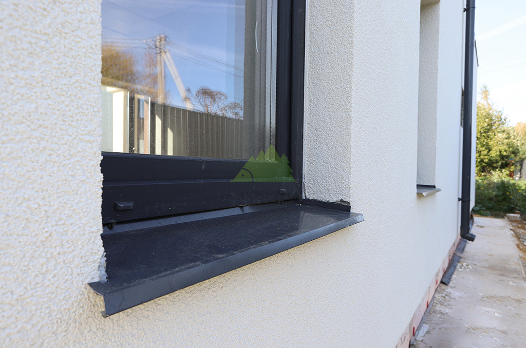Важным элементом, обеспечивающим защиту и эстетику плоских крыш бани и гаража, стала установка металлических парапетных крышек. Эти элементы, выполненные из металла, покрытого промышленной атмосферостойкой полимерной краской, эффективно защищают парапеты кровли от воздействия осадков, ультрафиолета и механических повреждений. Цвет покрытия крышек был тщательно подобран в общую цветовую гамму дома, что не только улучшило архитектурный облик кровли, но и придало завершенность всему ансамблю зданий.