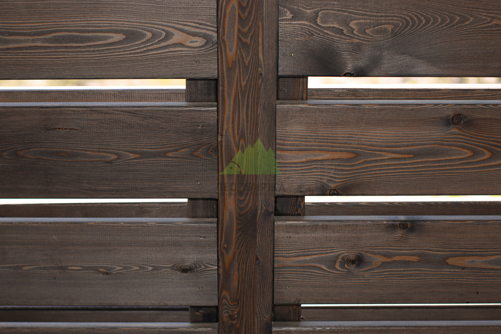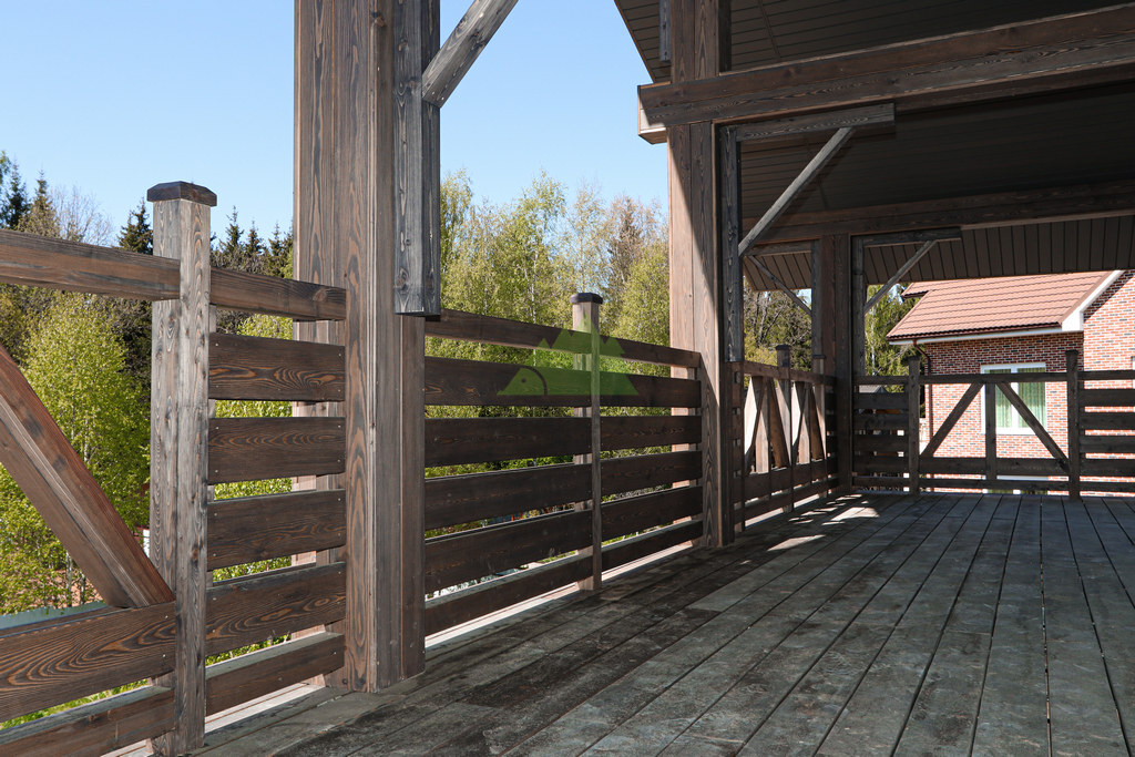 Вся древесина, используемая в проекте, была окрашена гидромаслом "Renner" YS А300 на собственном производстве Лесобиржи-Спб. Этот подход позволил нам значительно сократить сроки выполнения работ на объекте, минимизировать воздействие погодных условий на качество покрытия и гарантировать равномерность нанесения защитного состава. Бригада из трёх опытных специалистов Лесобиржи-Спб уложилась в месячный срок, что стало возможным благодаря слаженной работе и продуманной логистике.