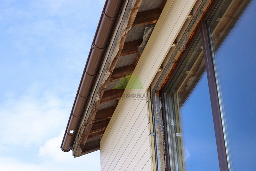 Помимо основной фасадной отделки, особое внимание было уделено деталям, которые формируют завершённый и благородный образ дома. Наши столяры-краснодеревщики изготовили и установили оконные наличники в изысканном финском стиле, которые добавили зданию элегантности и подчеркнули его архитектурные особенности. Углы дома были аккуратно оформлены декоративными накладками, которые не только скрыли стыки, но и придали строению законченный и гармоничный вид. Мы всегда стремимся к совершенству в каждой детали, чтобы конечный результат превосходил ожидания заказчика.