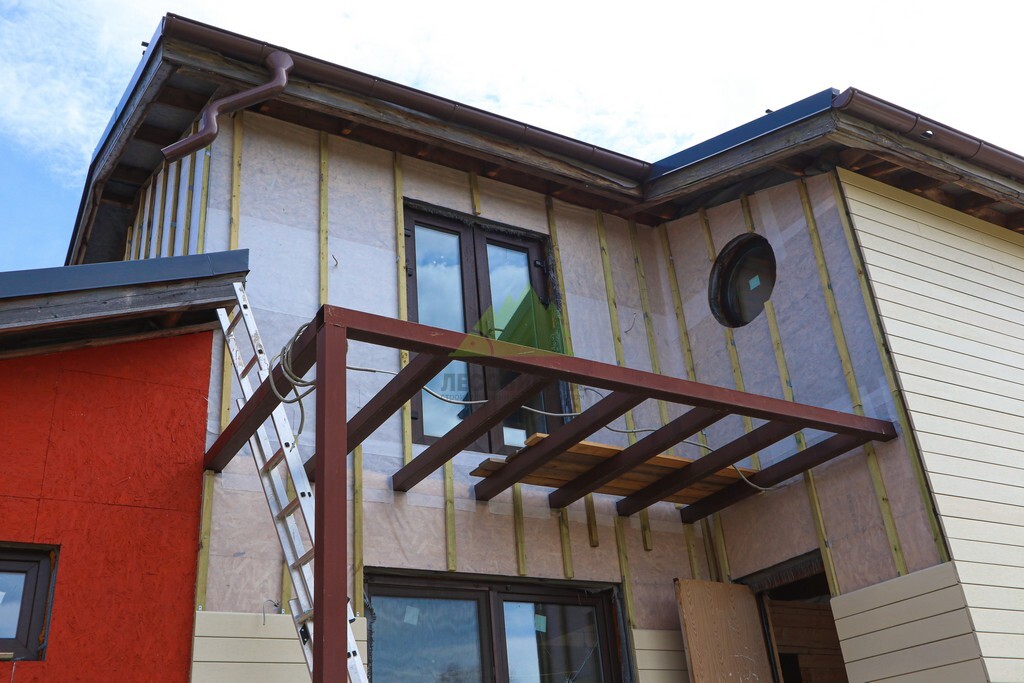 В качестве основы для монтажа была использована строганая обрешетка из сосны квадратного сечения 50х50 мм, обеспечивающая идеальную геометрию фасада. Особое внимание уделялось не только финишной отделке, но и фундаментальным этапам, таким как комплексное утепление и монтаж высококачественной ветрозащиты, что гарантирует дому комфортный микроклимат и экономию на отоплении на долгие годы. Каждый этап работы строго контролировался нашими прорабами, чтобы обеспечить безупречное качество и соответствие всем строительным нормам.