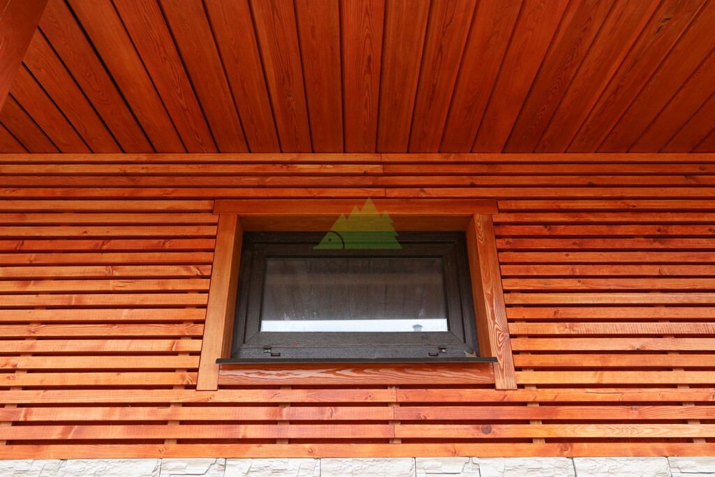 - Неповторимая эстетика: Лиственница обладает выразительной текстурой и благородным янтарным оттенком, который со временем приобретает ещё более глубокий и насыщенный вид. При правильной обработке и защитном покрытии фасад из лиственницы становится настоящим произведением искусства, притягивающим взгляды.