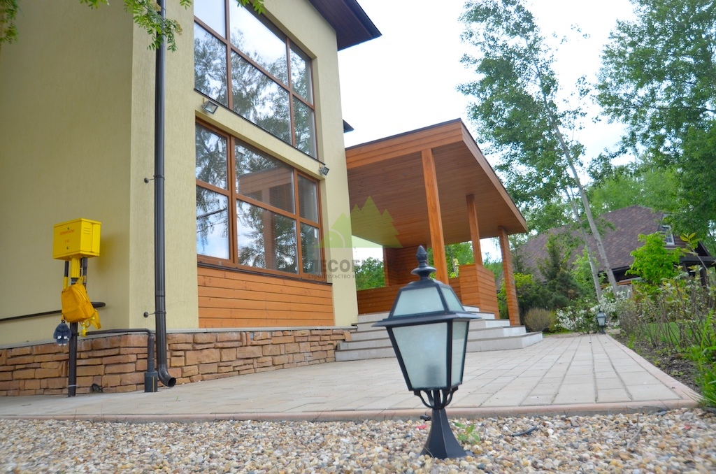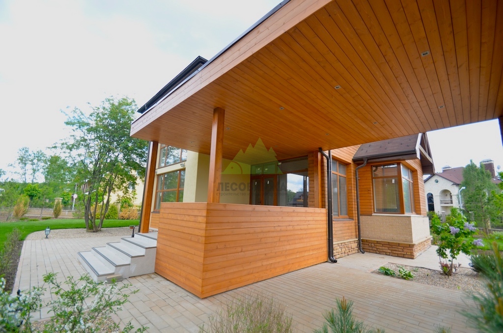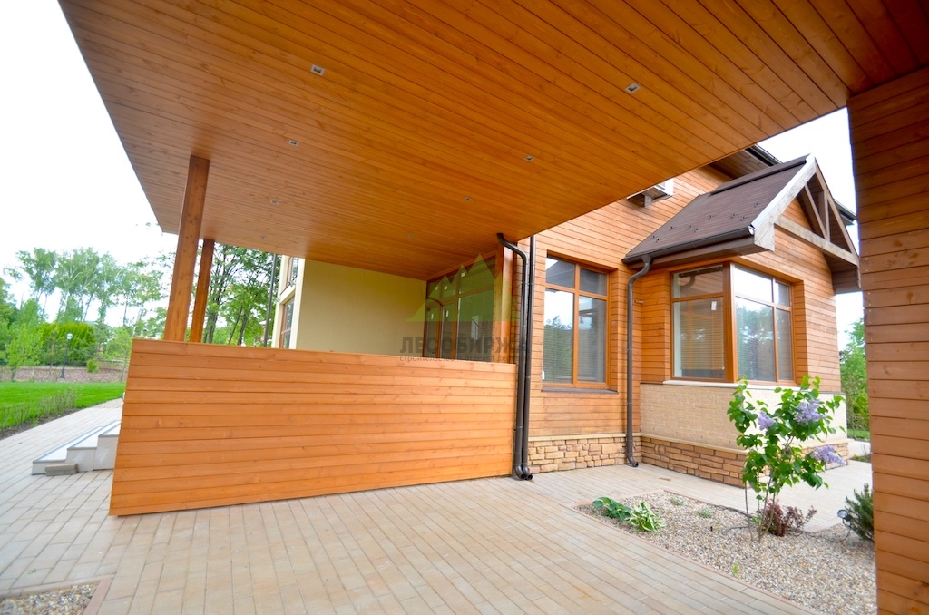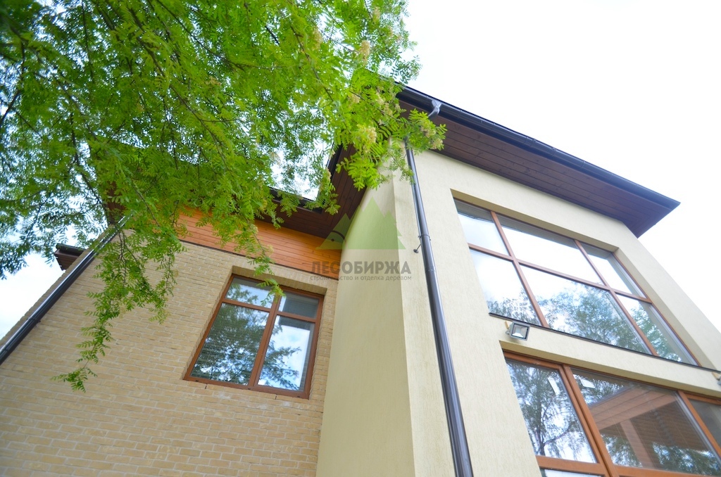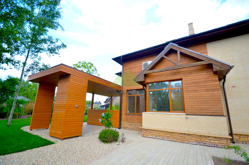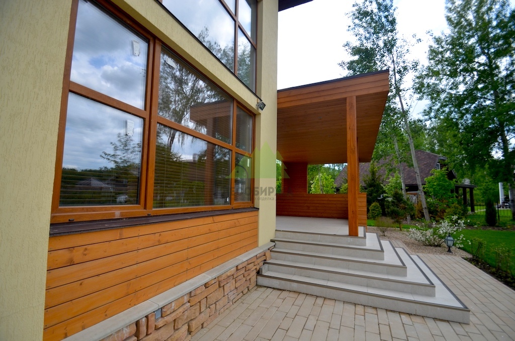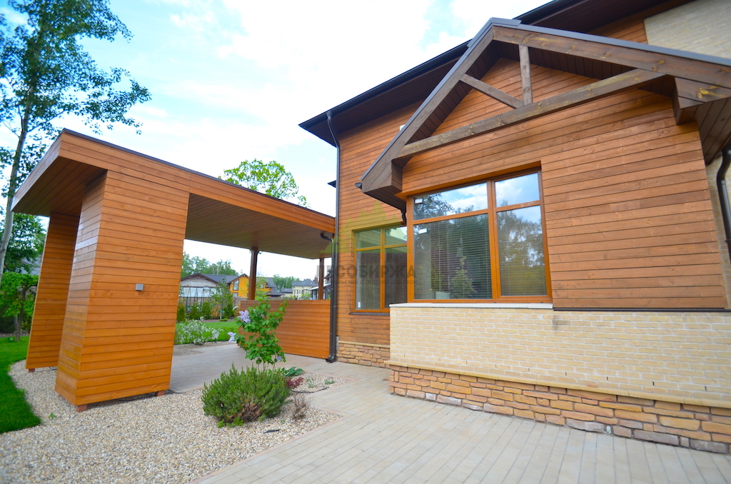 Комбинированный фасад - одно из самых интересных решений в отделке домов. Вариантов сочетания материалов великое множество. Наши заказчики в данном случае выбрали штукатурку и дерево, которые смотрятся интересно и гармонично.