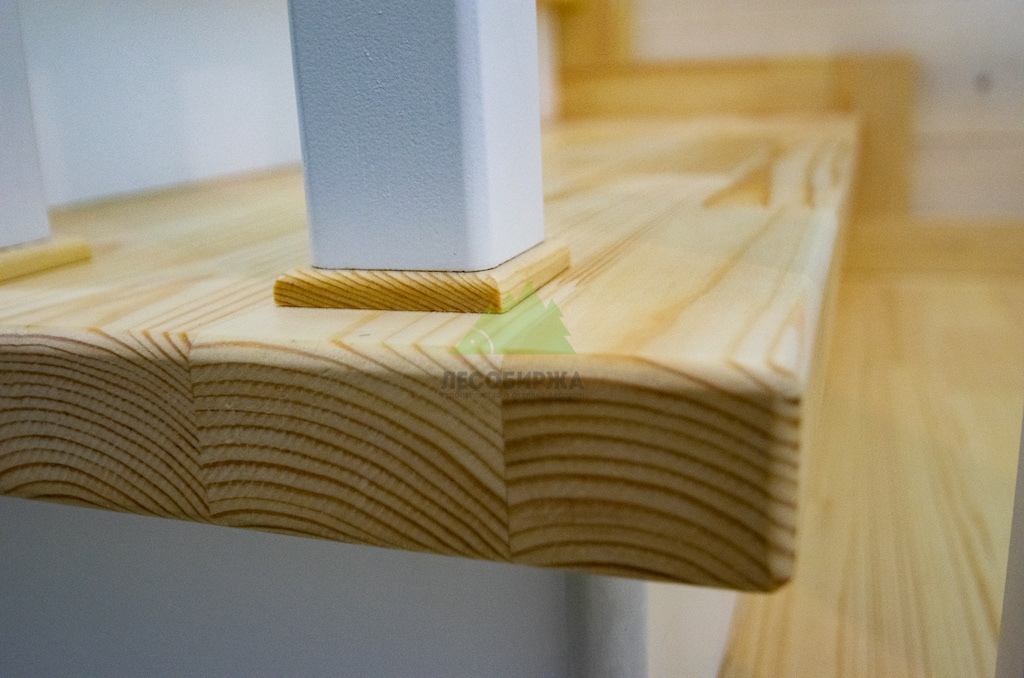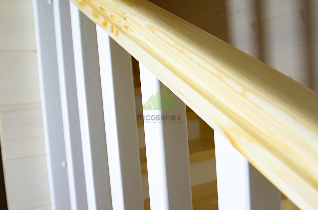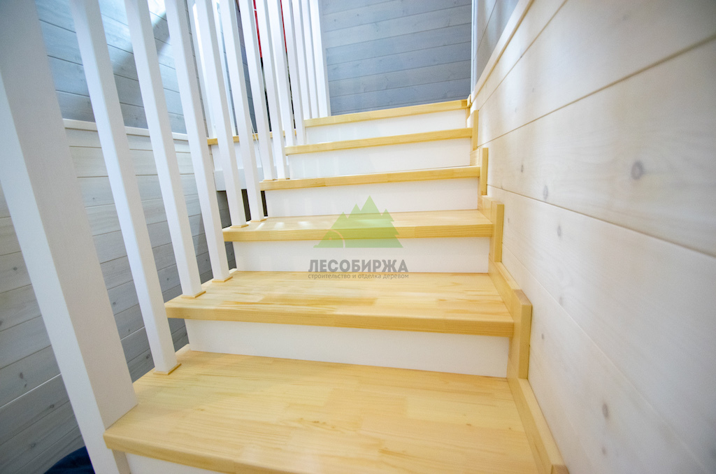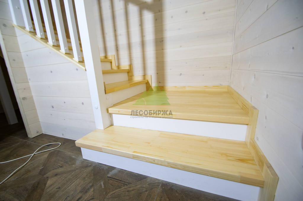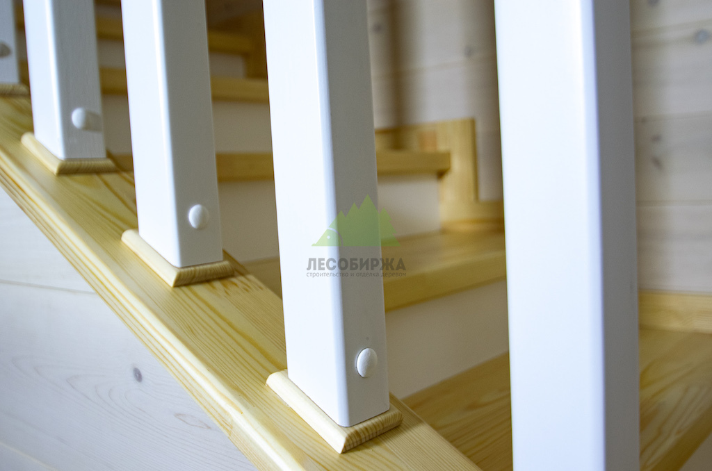Лестница из сосны и лиственницы с матовым белым покрытием и прозрачным лаком | ООО "ЛесоБиржа" - СПб. Санкт-Петербург