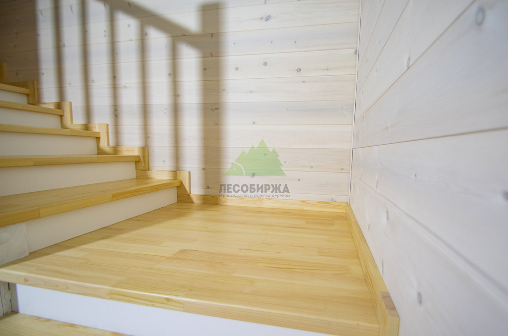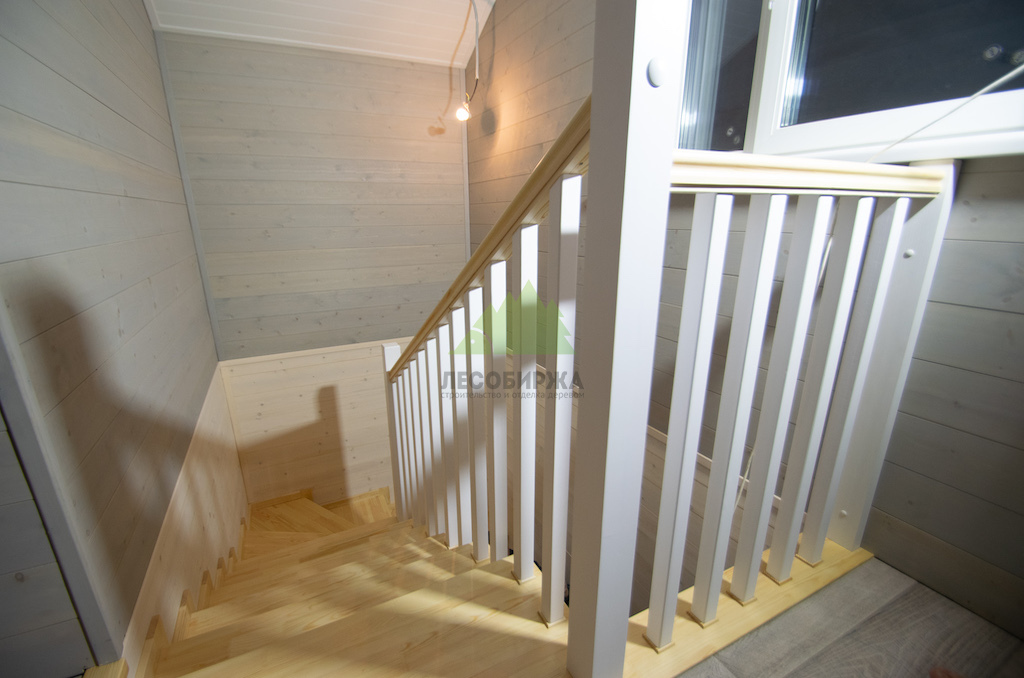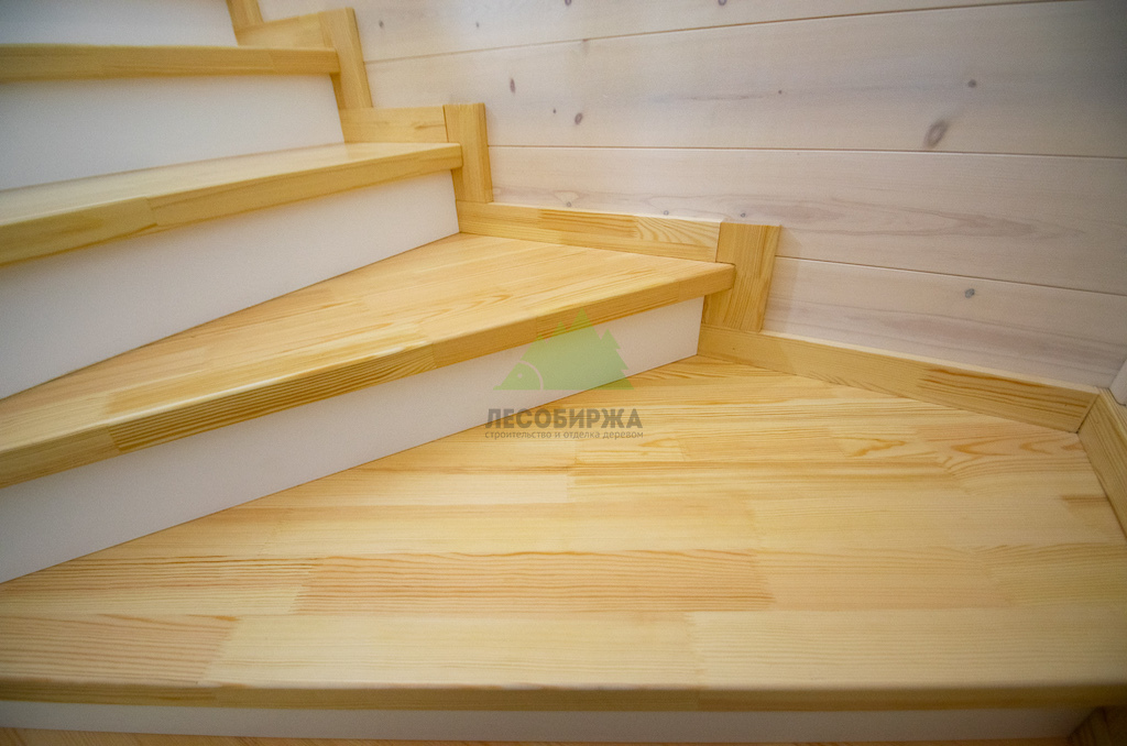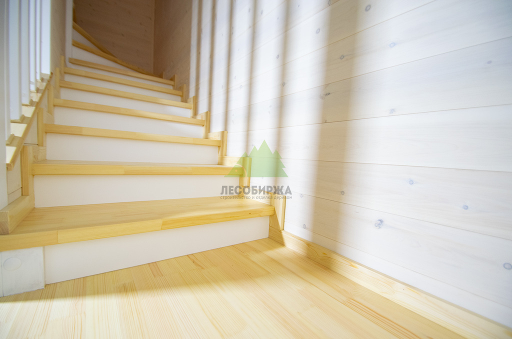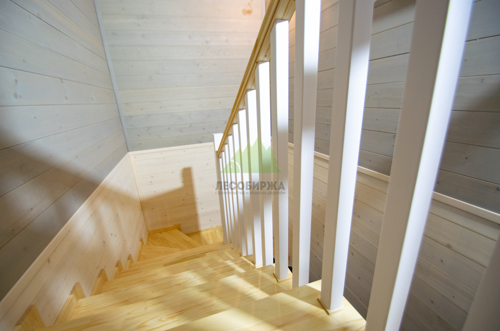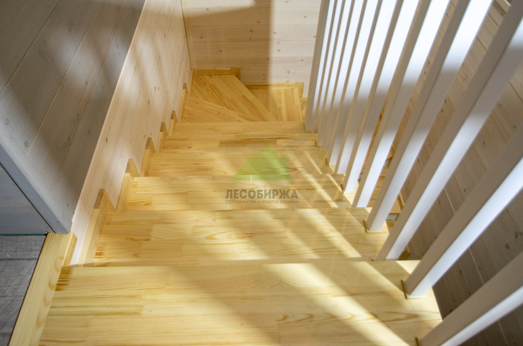 Лестница из сосны и лиственницы с матовым белым покрытием и прозрачным лаком | ООО "ЛесоБиржа" - СПб. Санкт-Петербург