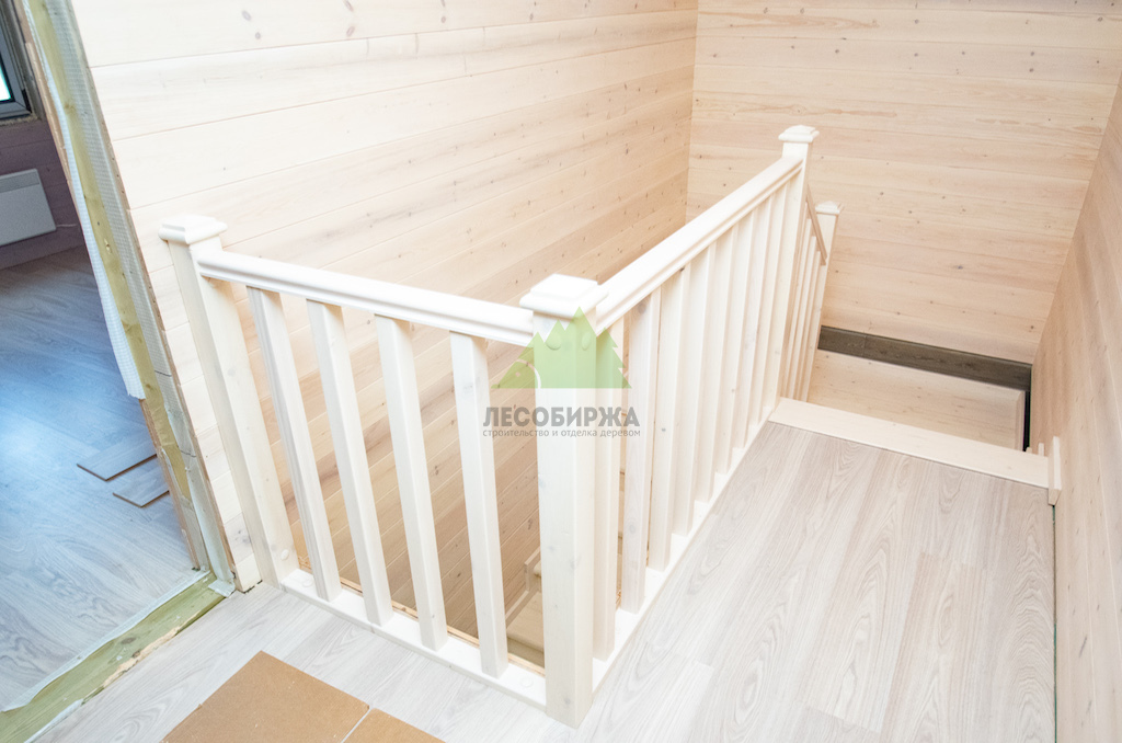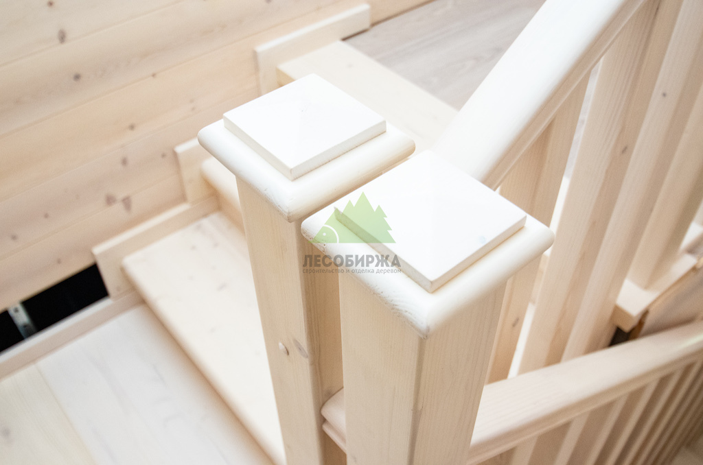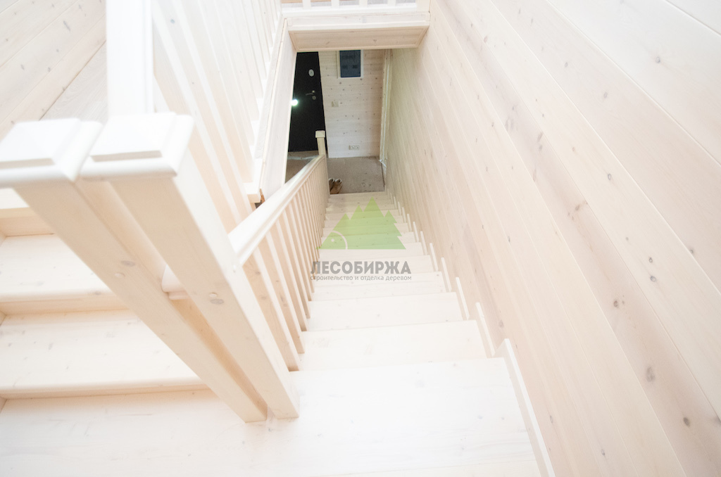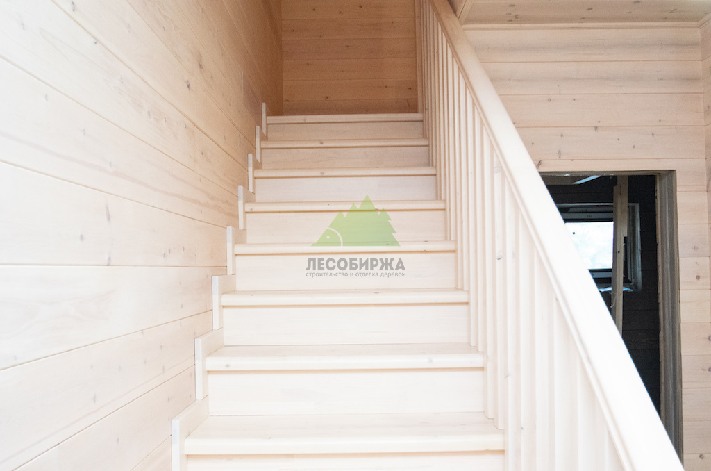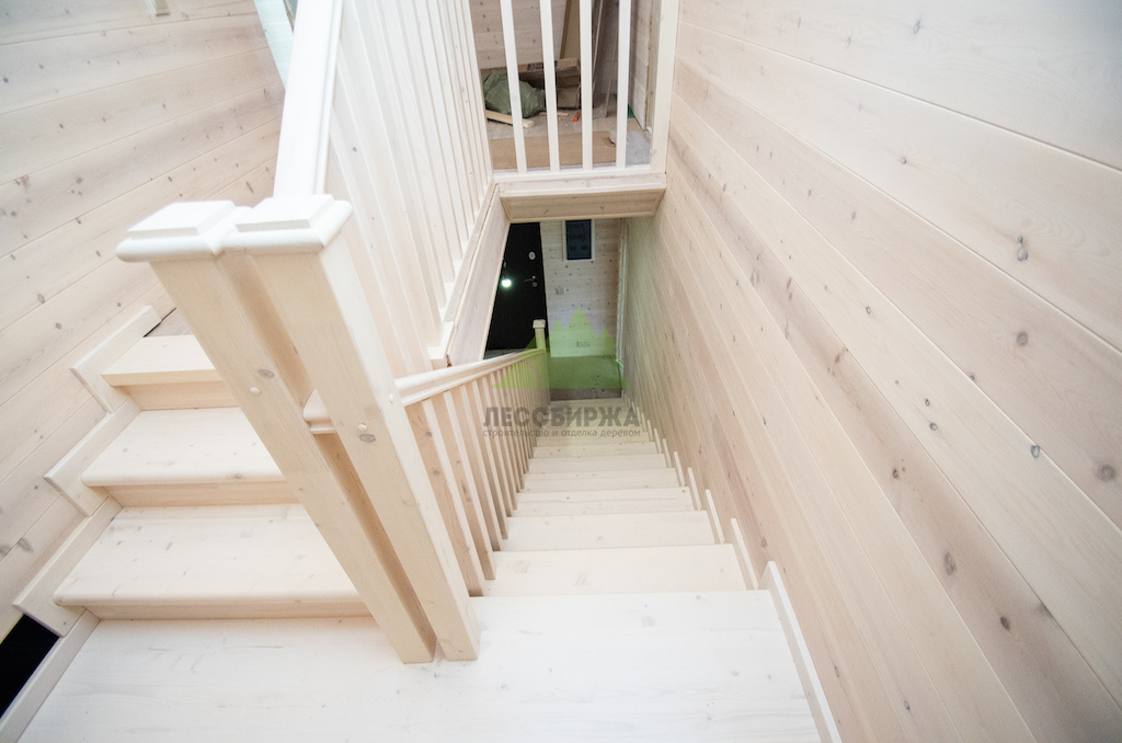 Межэтажная лестница из мебельного щита сосны сорта А/А с бесцветным покрытием | ООО "ЛесоБиржа" - СПб. Санкт-Петербург