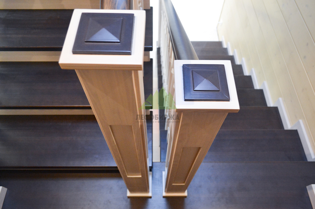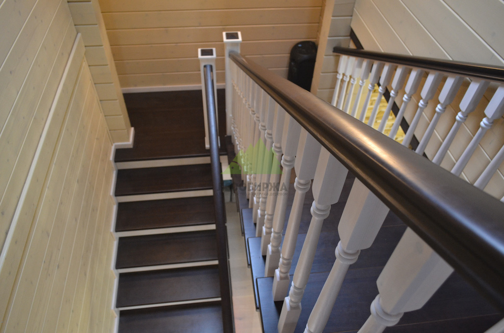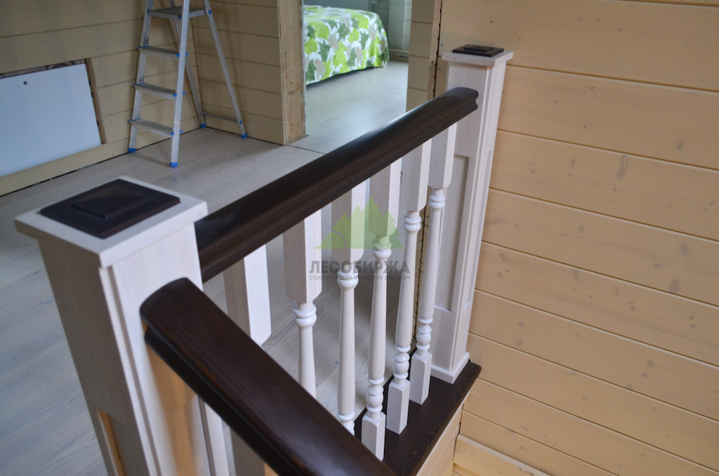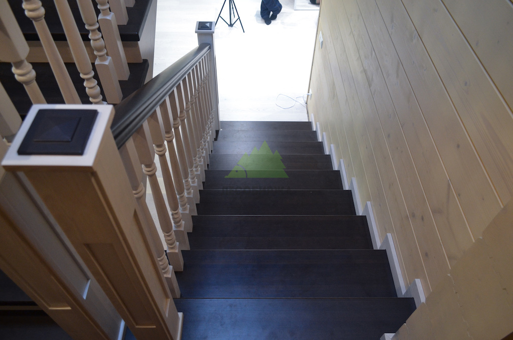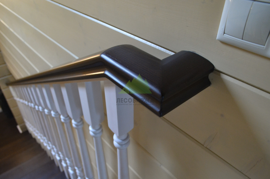 Вопрос безопасности был решен с присущим Лесобирже-Спб вниманием к деталям. На втором марше было выполнено двойное ограждение – это не только оригинальное дизайнерское решение, но и целенаправленная мера по усилению конструкции и обеспечению максимальной безопасности на этом участке. Наши специалисты после тщательных расчетов предложили этот вариант, и он был с одобрением принят заказчиком как наиболее удачный и функциональный. Ограждение лестничных маршей оформлено с большим вкусом: точеные, фигурные балясины и оригинальной формы столбы создают впечатление прочности и основательности.
