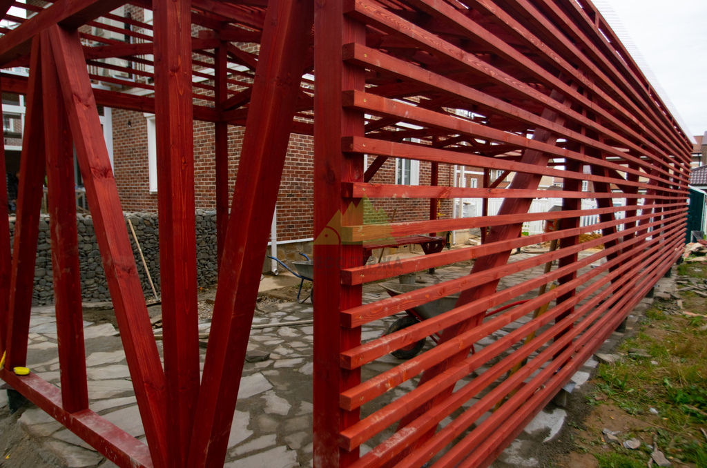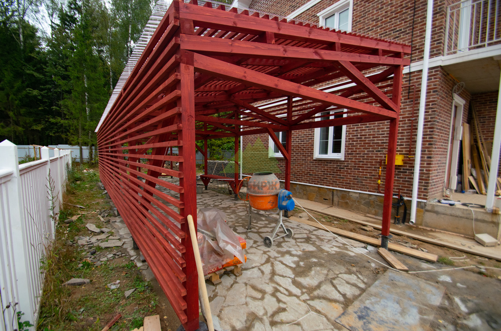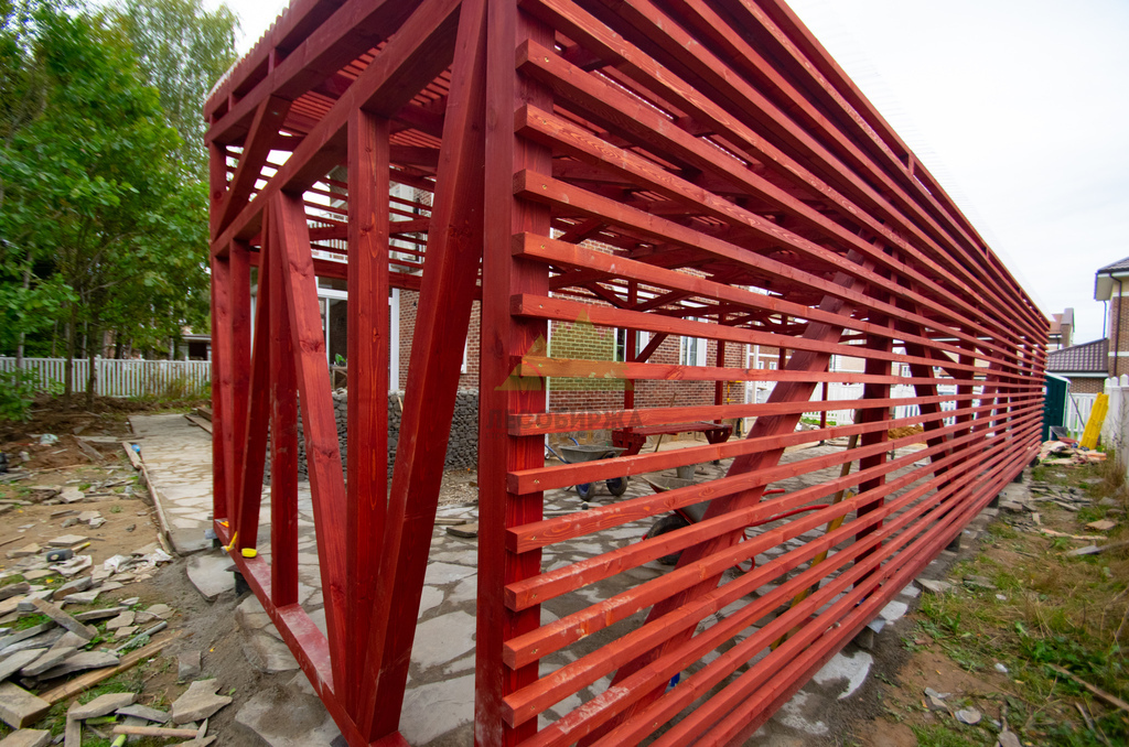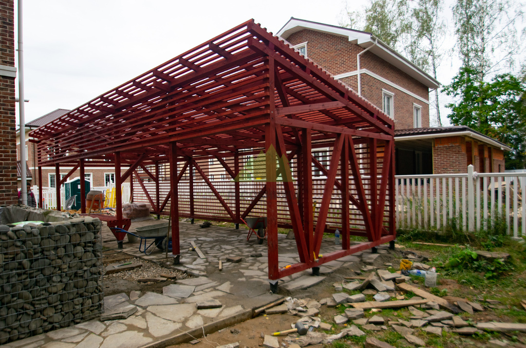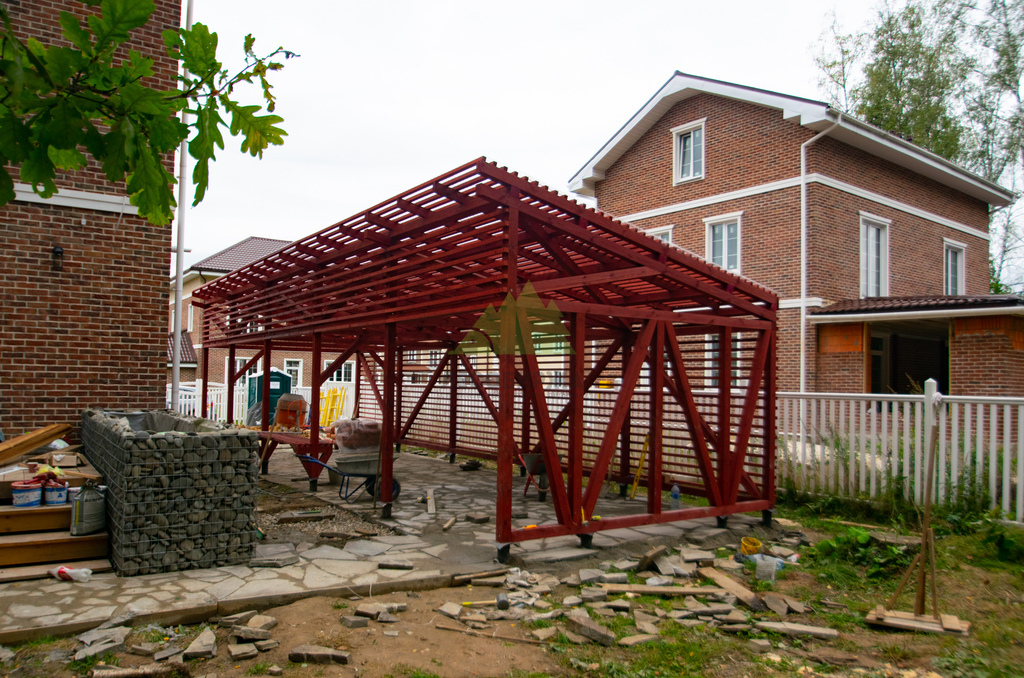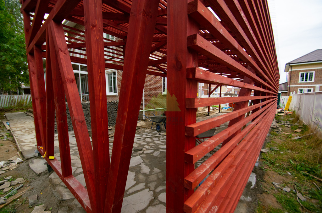 Элегантный навес для авто из дерева с покраской маслом Renner | ООО "Лесобиржа" - Спб. Санкт-Петербург