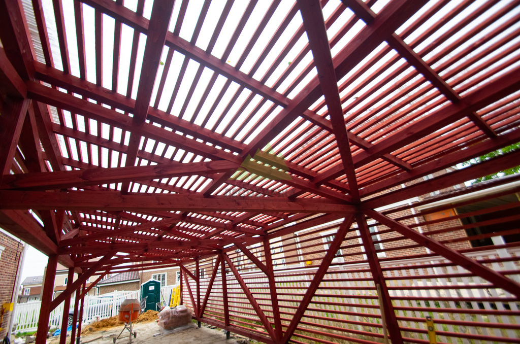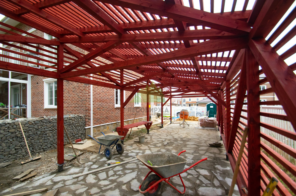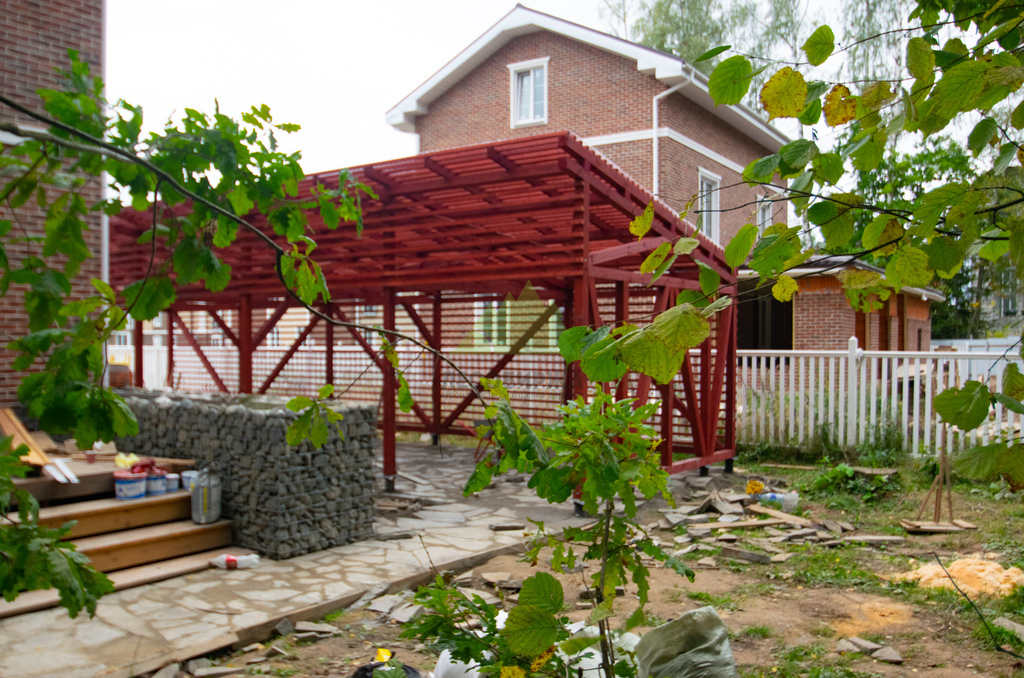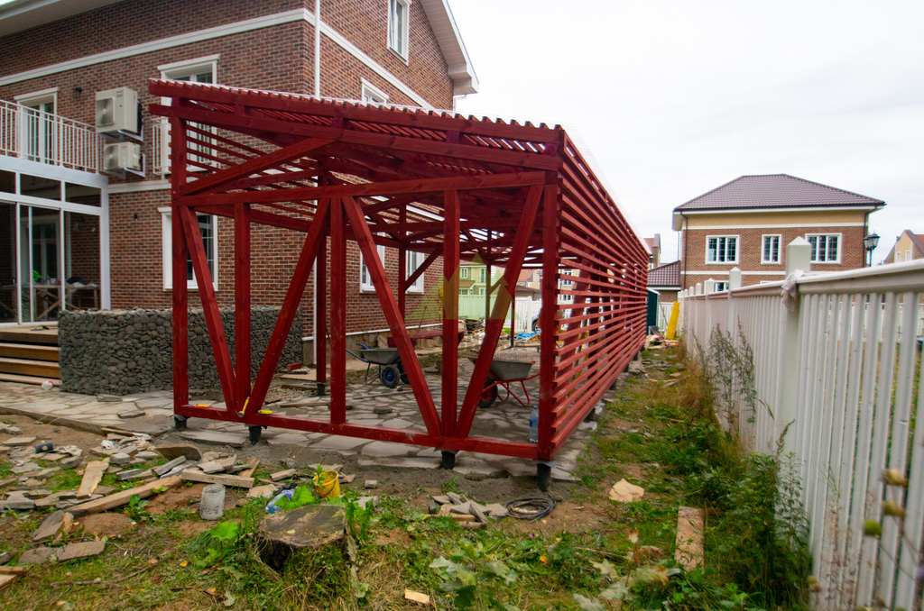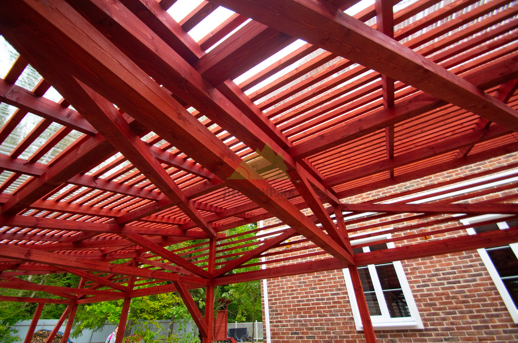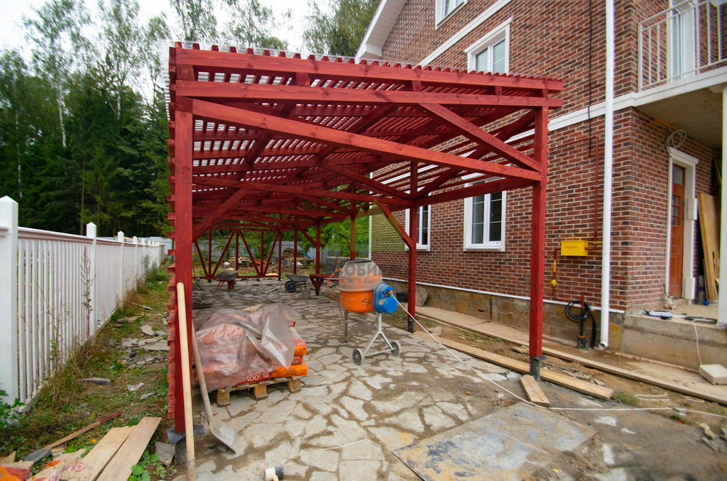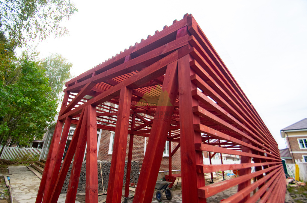 Элегантный навес для авто из дерева с покраской маслом Renner | ООО "Лесобиржа" - Спб. Санкт-Петербург