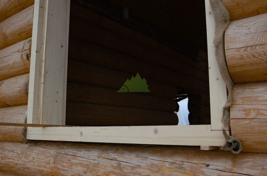 - Установка вершника: Верхняя часть обсадной коробки (вершник) устанавливается последней. Между вершником и верхним бревном проема обязательно оставляется компенсационный зазор. Этот зазор, заполненный утеплителем GREEN PLANET, позволяет срубу свободно усаживаться на протяжении многих лет, не оказывая давления на обсаду и, соответственно, на окна и двери.