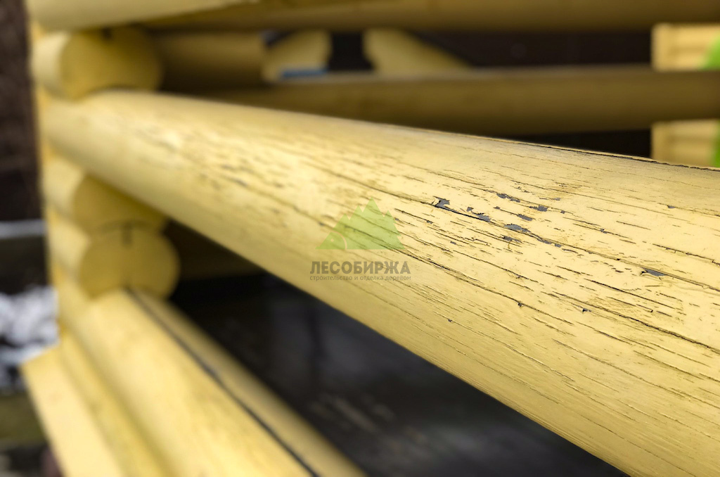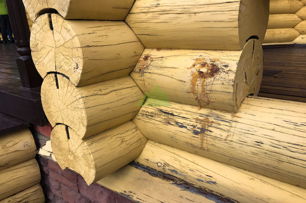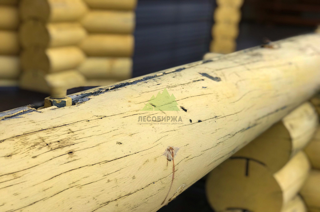 2. Множественные мелкие и глубокие трещины в торцевых частях бревен, образовавшиеся из-за перепадов влажности и температур.