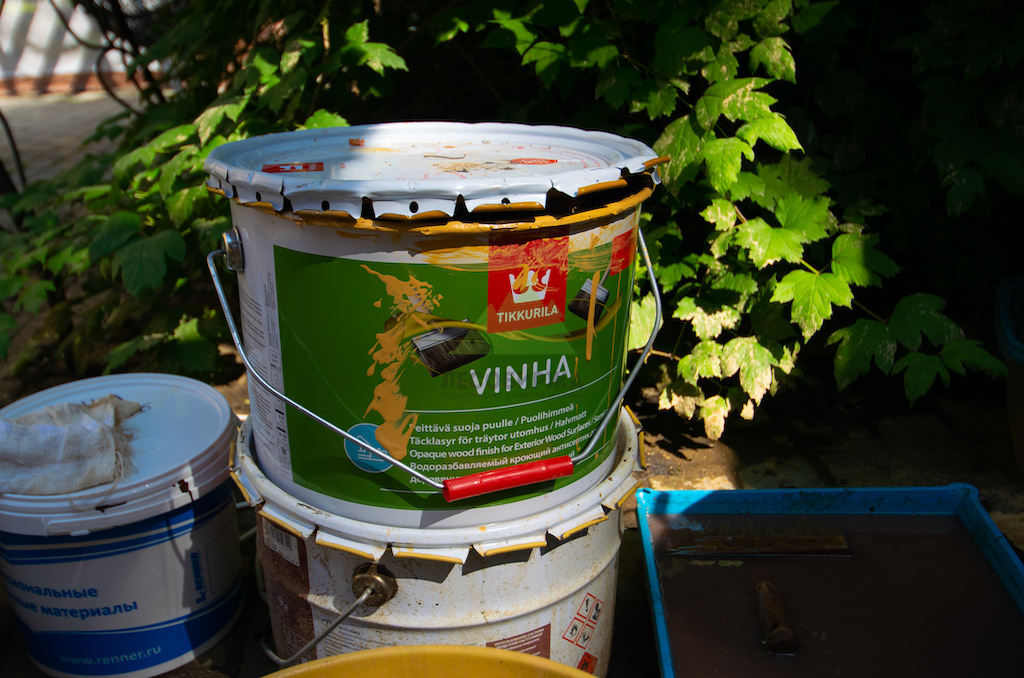 - Нанесение первого слоя кроющего антисептика Tikkurila Vinha: После высыхания грунтовки мы приступили к нанесению первого слоя Vinha. Этот кроющий антисептик не только обеспечивает прекрасное декоративное покрытие, но и дополнительную защиту. Его уникальный состав позволяет древесине "дышать", при этом эффективно отталкивая воду и ультрафиолетовое излучение.
