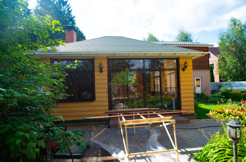 - Нанесение второго (финишного) слоя Tikkurila Vinha: Завершающим этапом стало нанесение второго, финишного слоя Vinha. Именно этот слой придает фасаду и беседке законченный, эстетичный вид и обеспечивает максимальную защиту. Выбор цвета был согласован с заказчиком, который остался в восторге от насыщенности и глубины оттенка, преобразившего их дом до неузнаваемости.